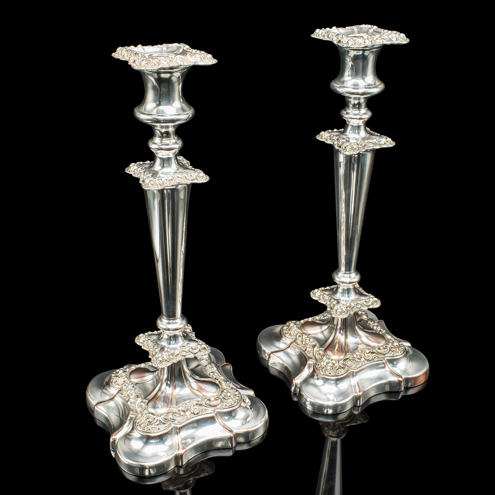 Tall Pair of Antique Candlesticks, English, Silver Plated Candle Sconce - Edwardian