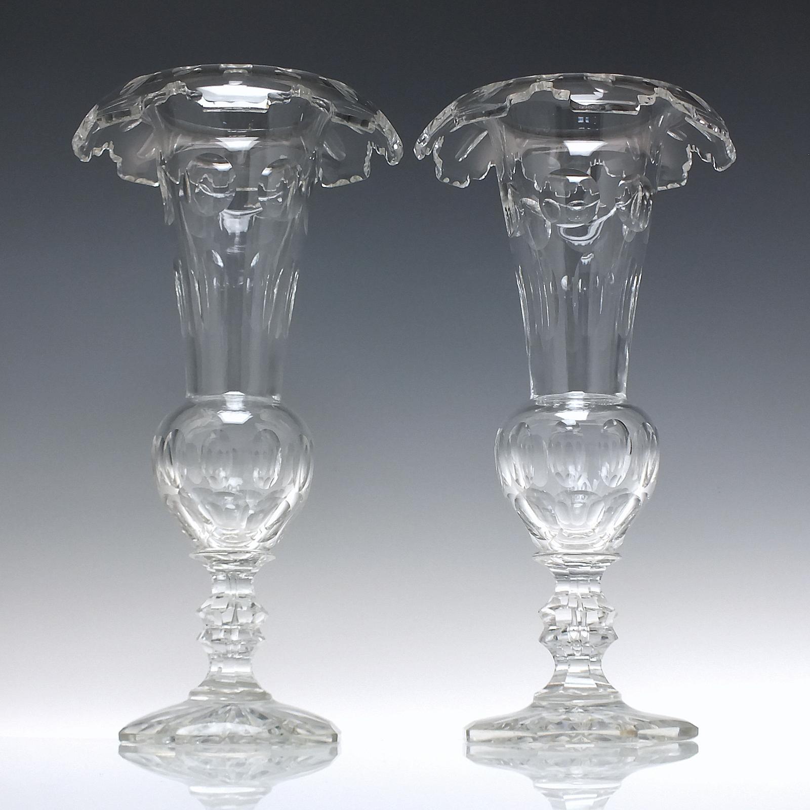 Tall Pair of Victorian Cut Glass Vases C1860