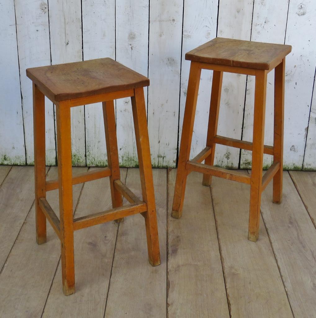Tall Pair Of Vintage School Lab Bar Dining Stools