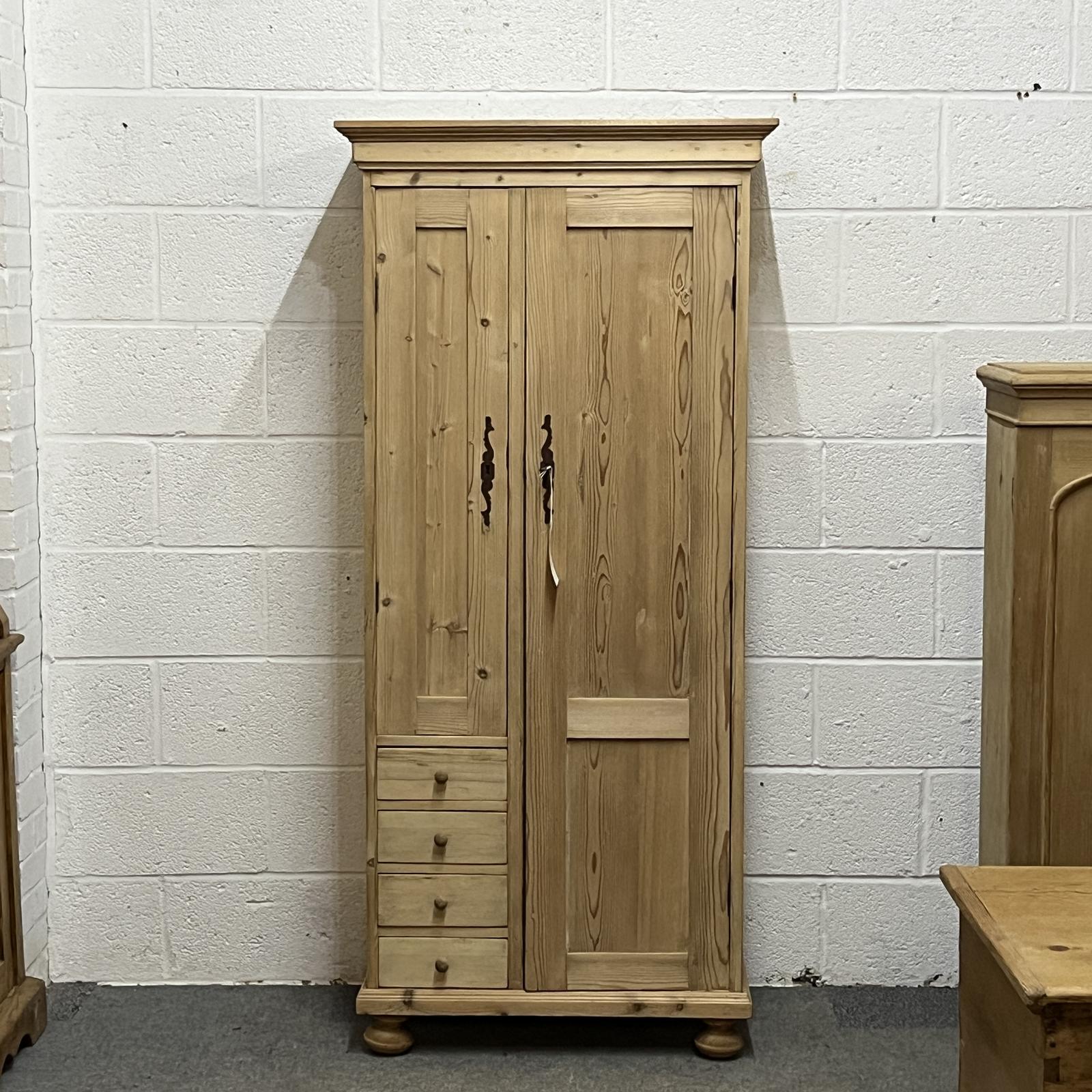 Tall Slim 2 Door Pine Cupboard With Drawers