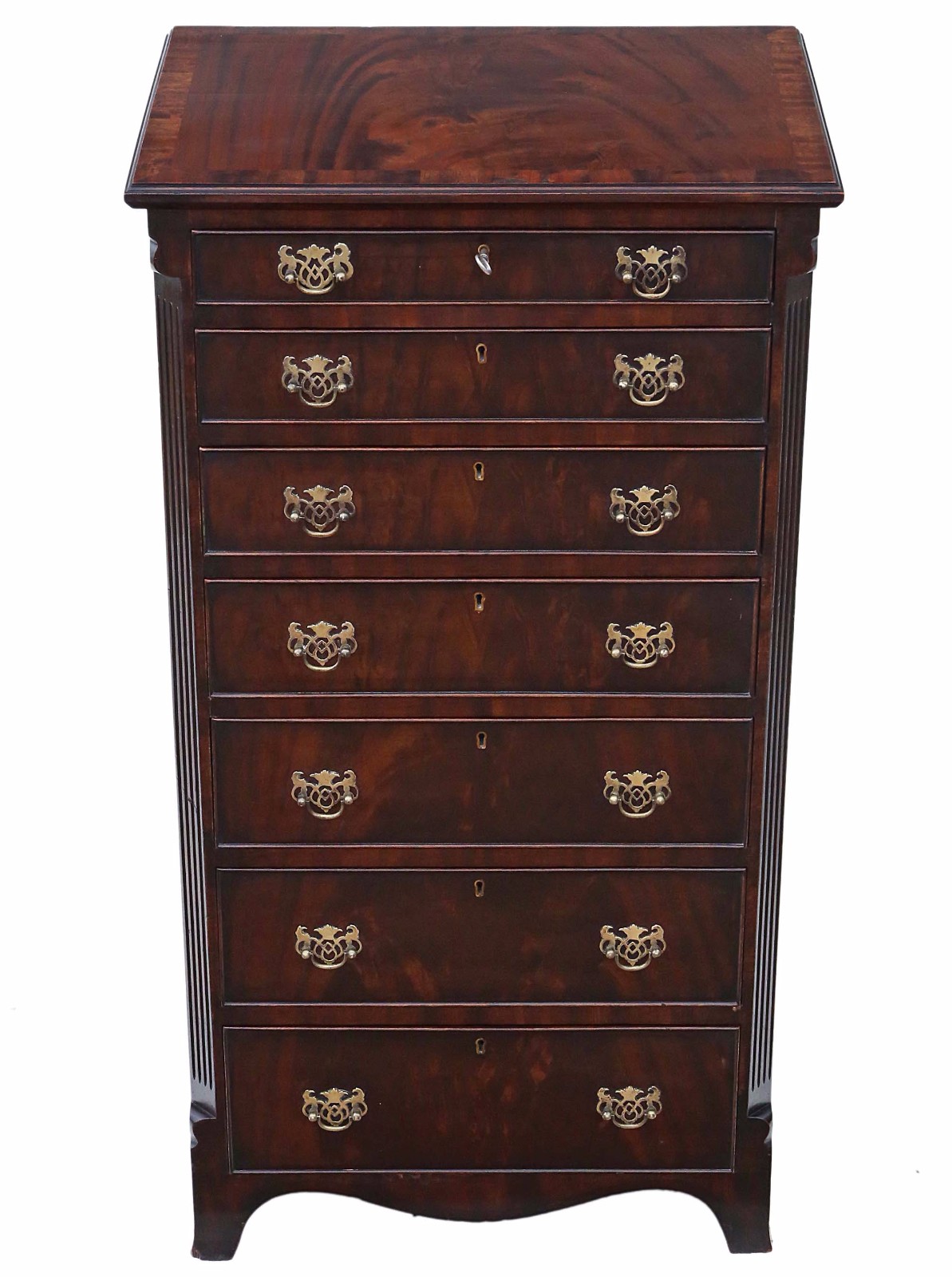 Tall Slim Early 20th Century Mahogany Wellington Chest of Drawers
