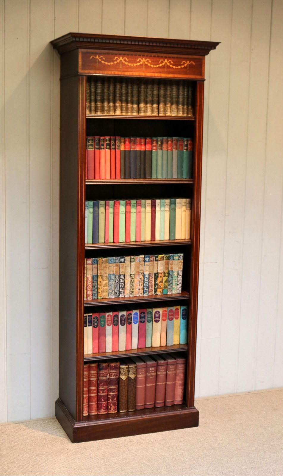 Tall Slim Mahogany Open Bookcase