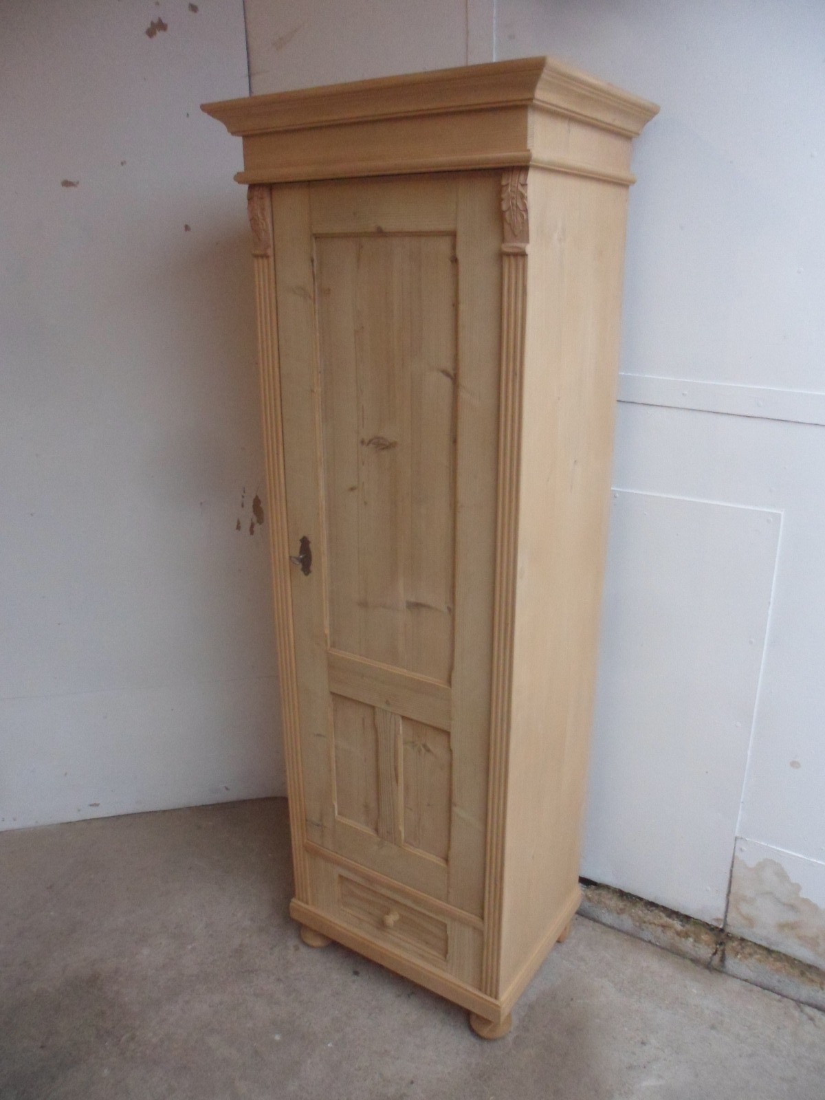 Tall Thin 1 Door Old Pine Kitchen / Storage Cupboard to wax / paint