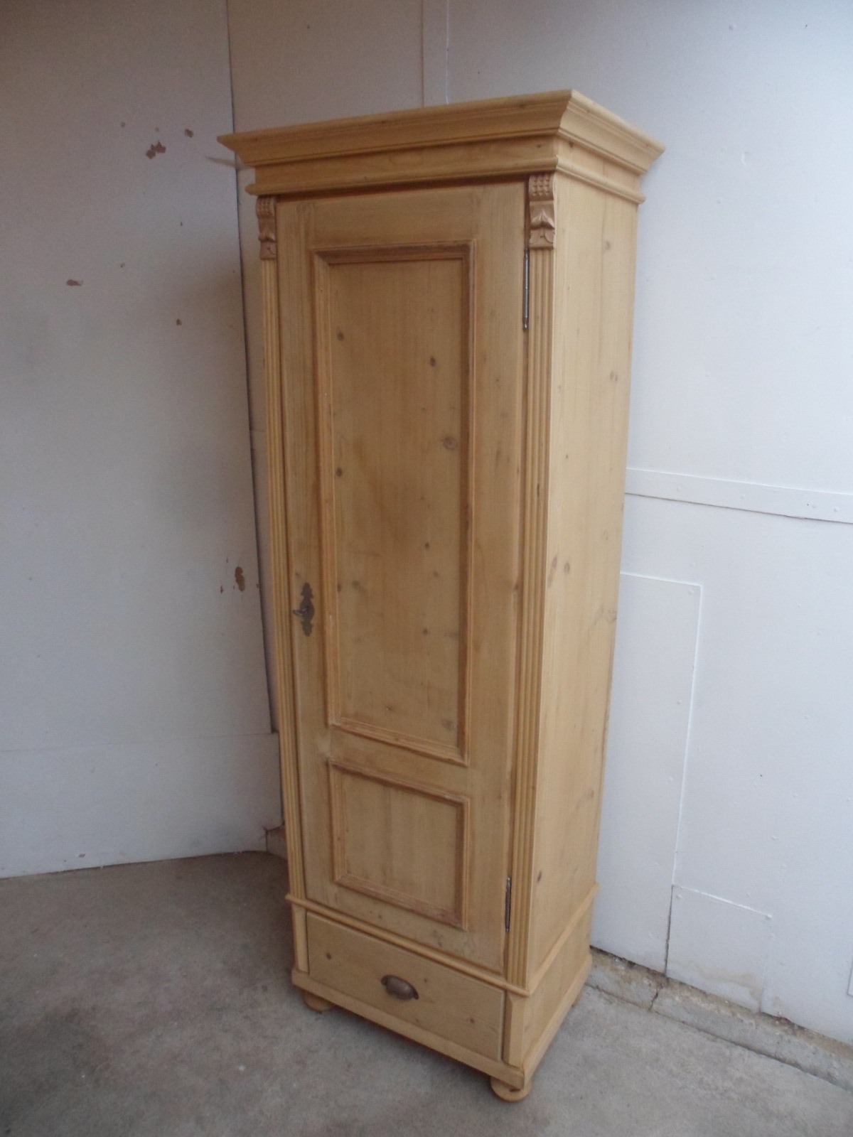 Tall Thin Old Pine Child's Wardrobe / Storage Cupboard to wax / paint