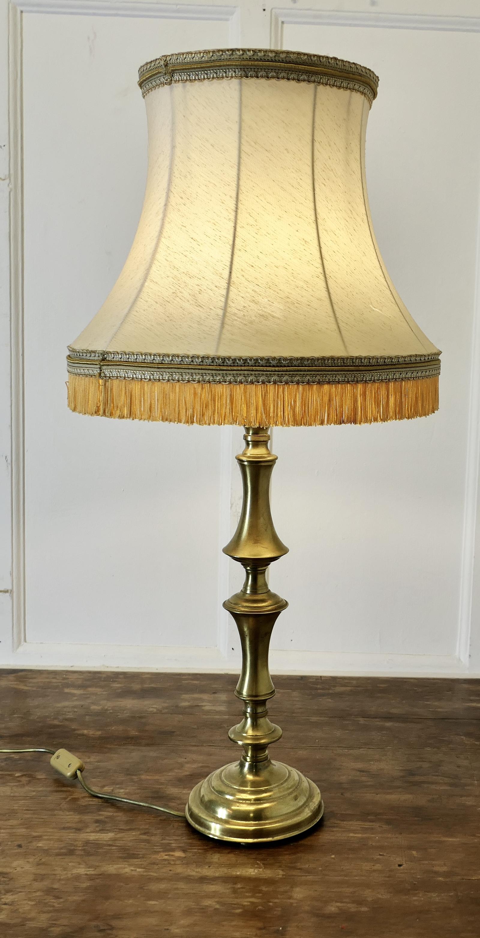 Tall Turned Column Brass Table Lamp with Oversize Shade