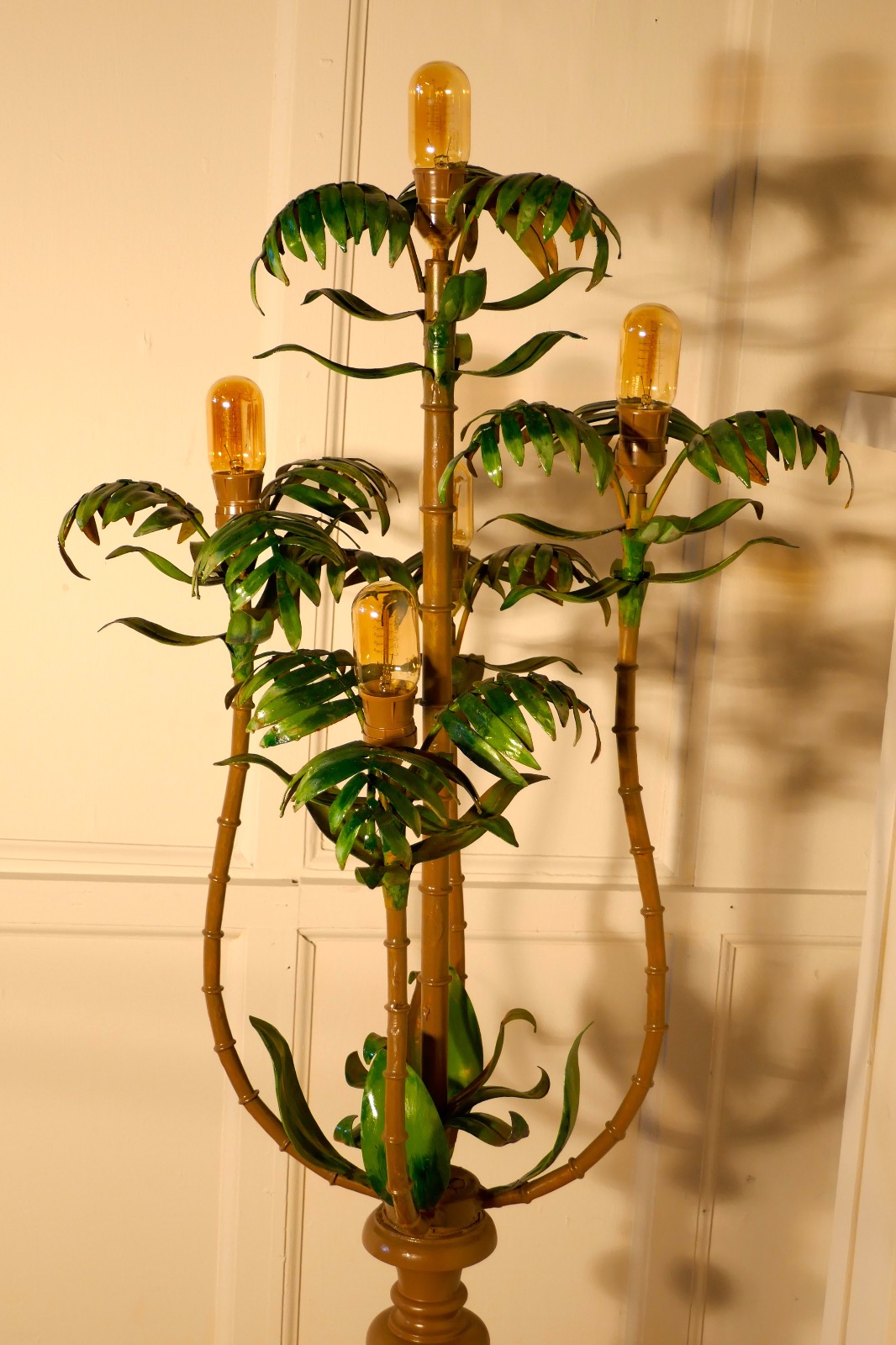 Tall Unusual French Conservatory Painted Toleware Floor Lamp C.1920