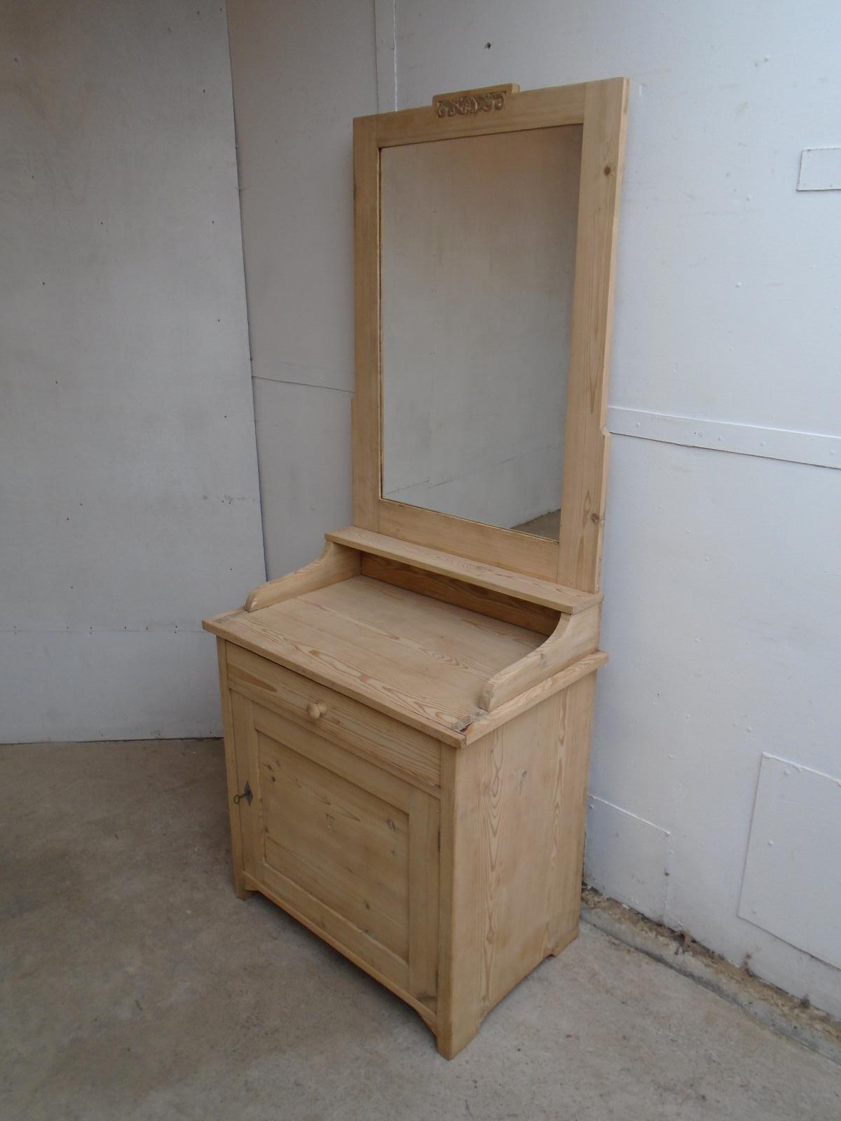 Tall Victorian Antique Pine Dressing Chest / Cheval Mirror to wax / paint