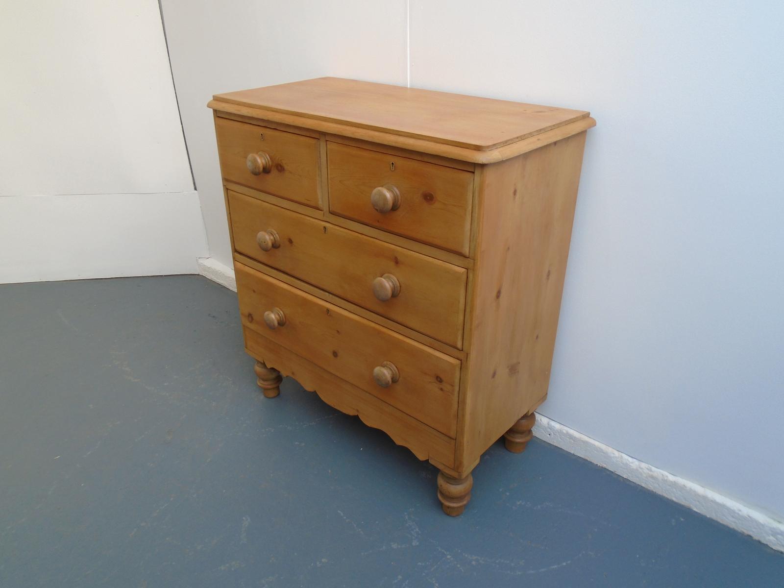 Tall Victorian Antique Pine Waxed 4 Drawer Chest of Drawers