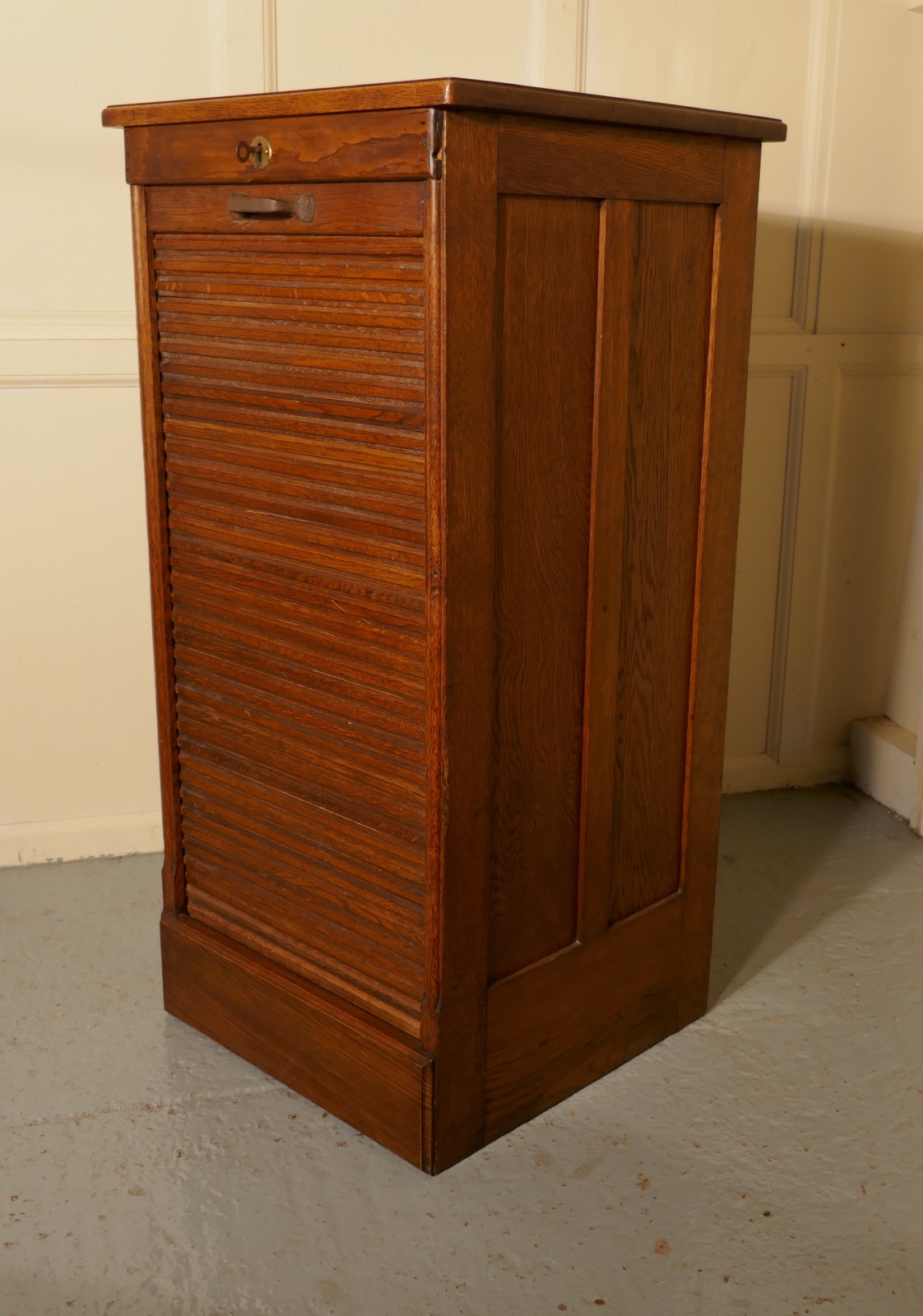 Tambour Fronted Oak Art Deco Filing Cabinet