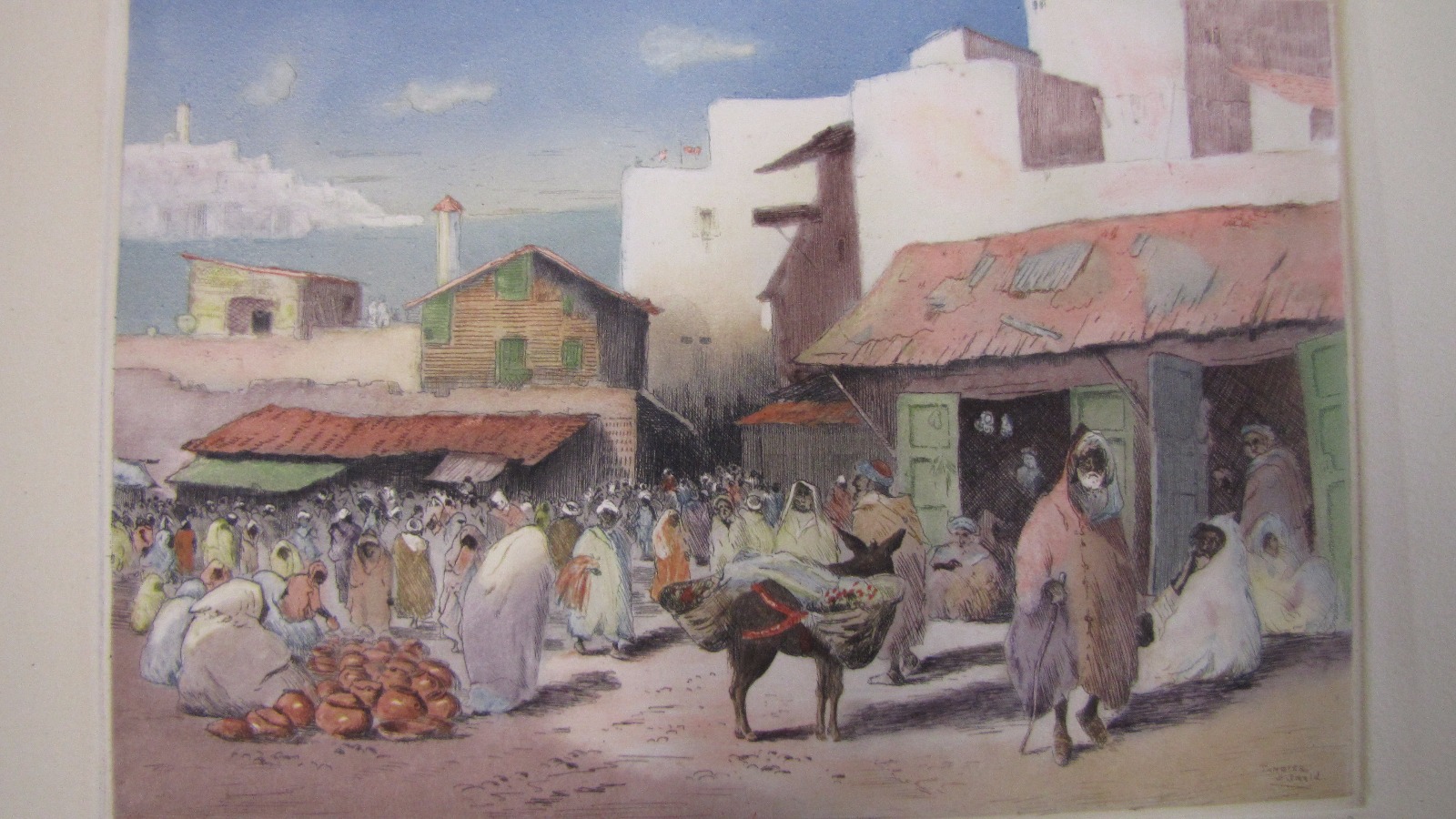 'Tangier Soko' Original Coloured Etching by D. Donald