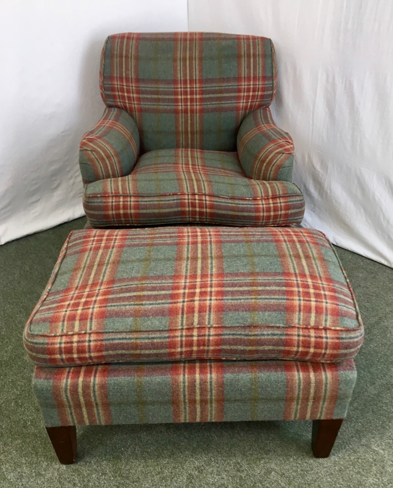 Tartan Upholstered Armchair with Foot Stool 'Style & Comfort London'