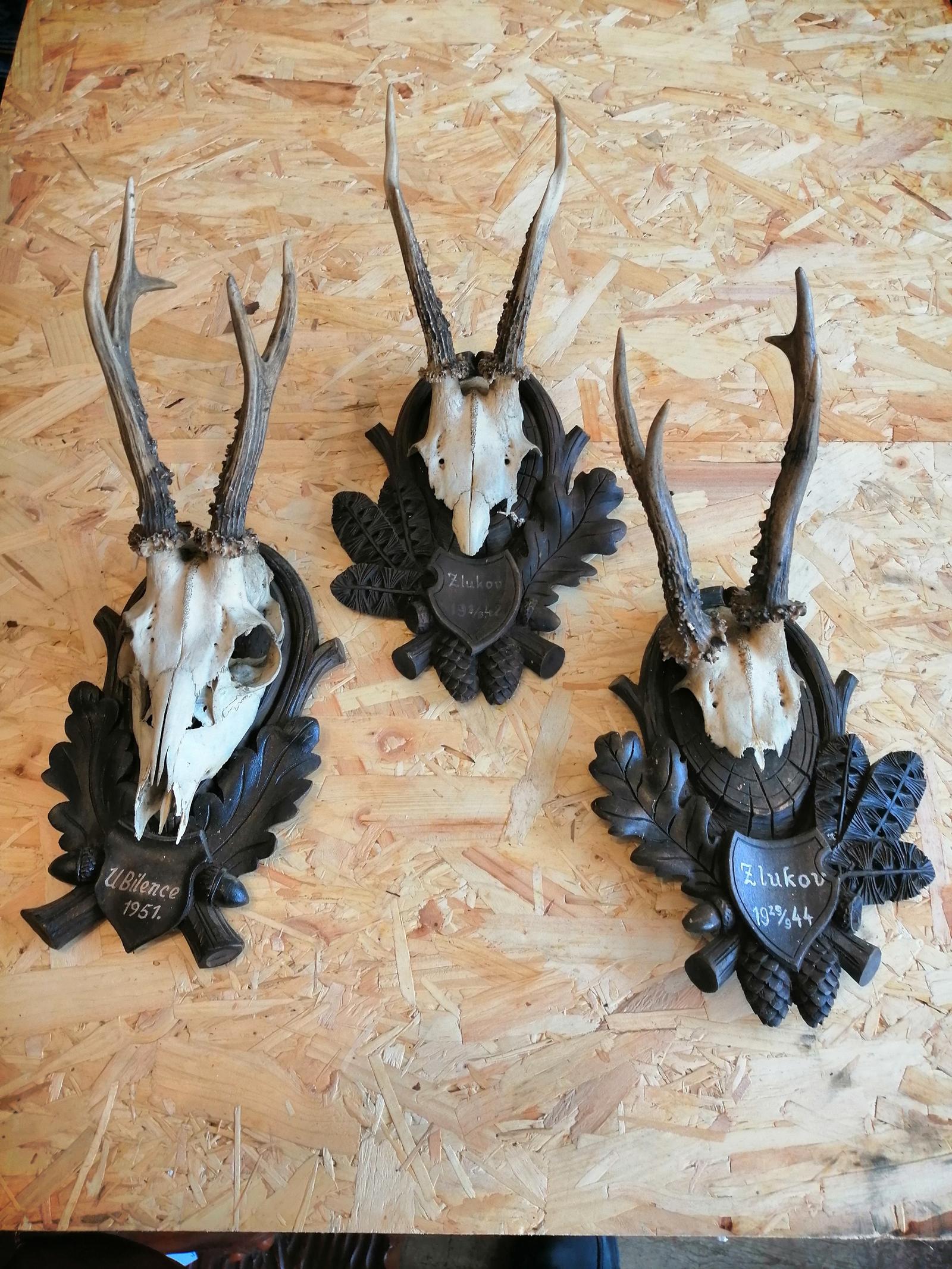 Taxidermy: Group of 3 Mid 20th Century Roe Buck 1/2 Skulls