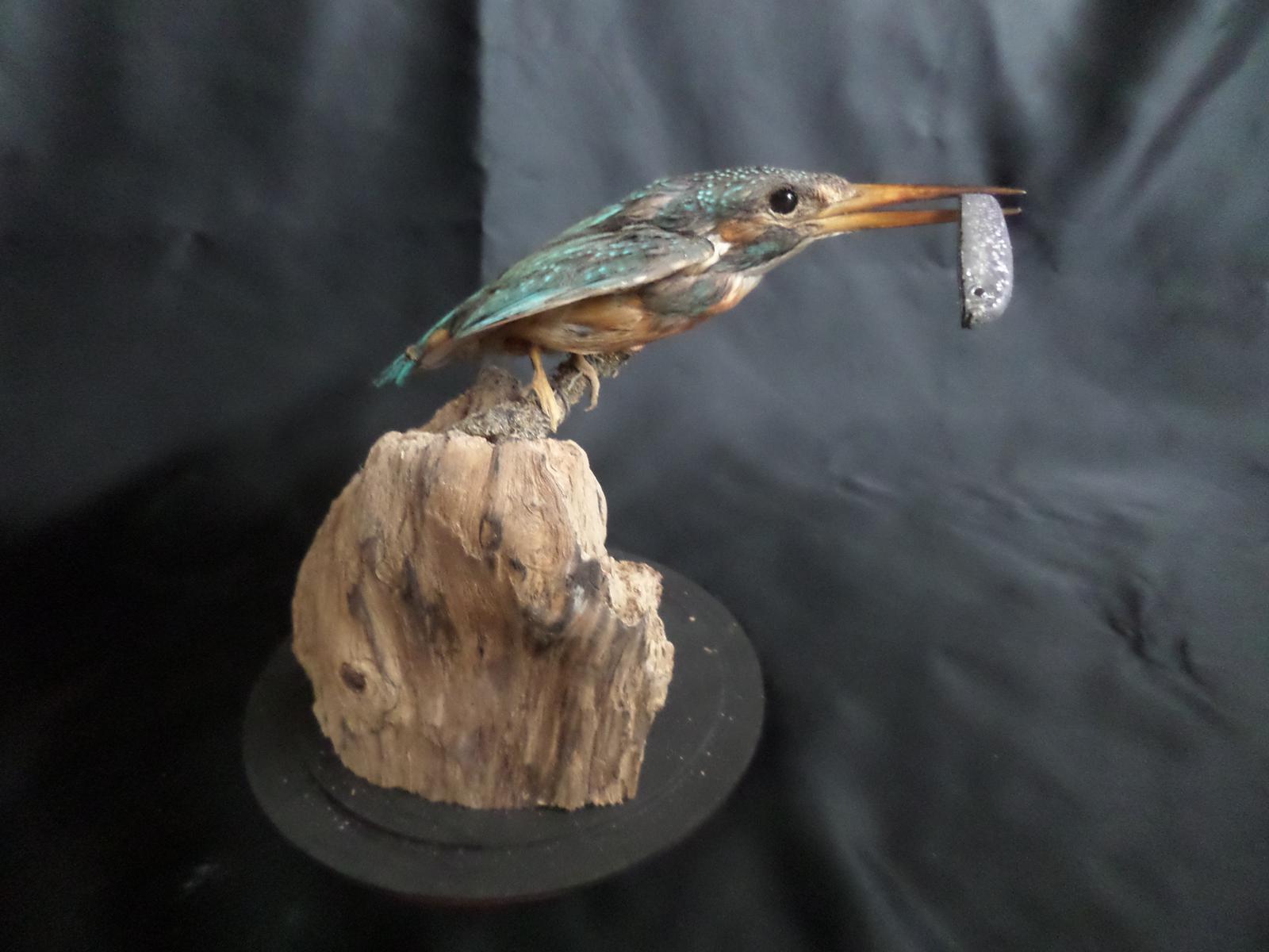Taxidermy Study of a Kingfisher with Fish