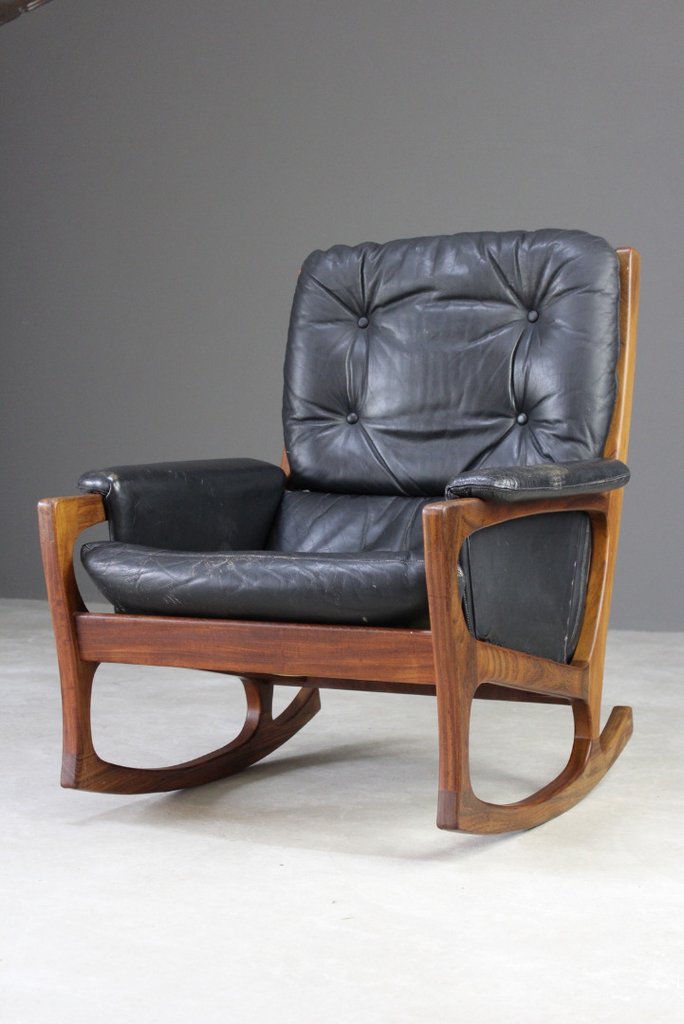 Teak & Black Leather Gimson & Slater Rocking Chair (1 of 1)