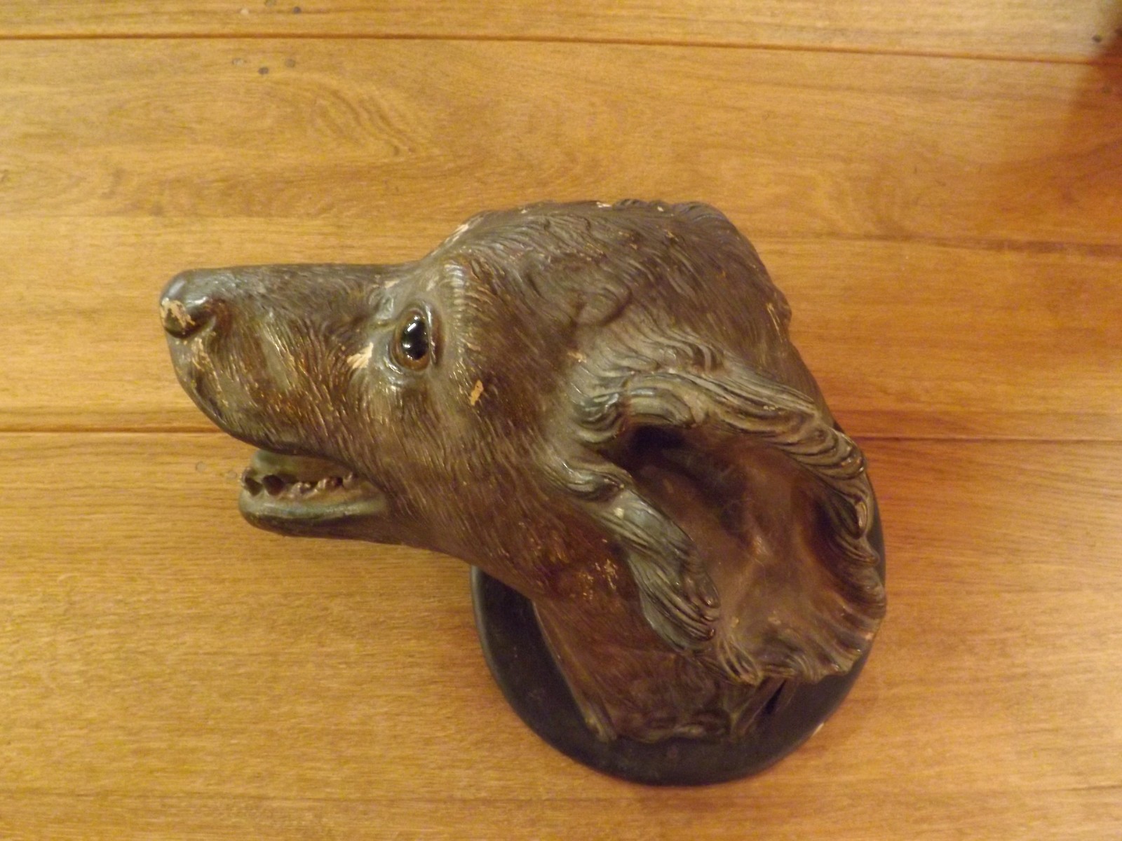 Terracotta Austrian Cold Painted Dogs Head Dated 19Th-20th Centure (1 of 1)