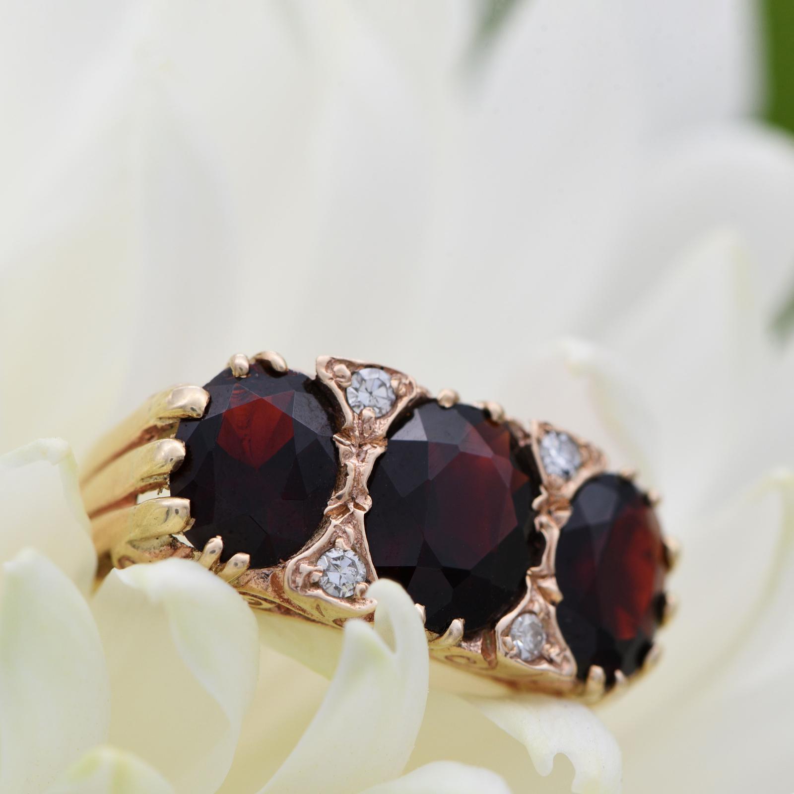 The 1973 Garnet & Diamond Scrolled Top Vintage Ring