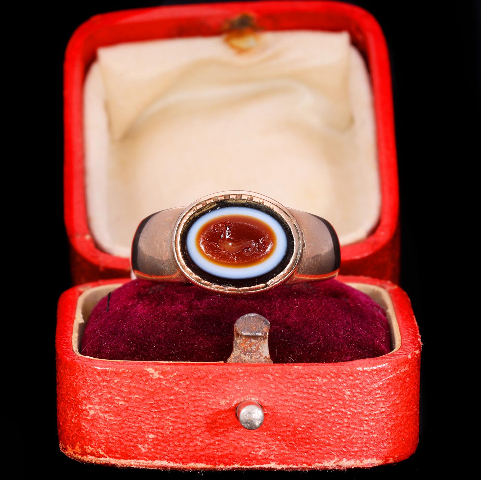 The Ancient Roman Bullseye Agate Hippocampus Intaglio Signet Ring