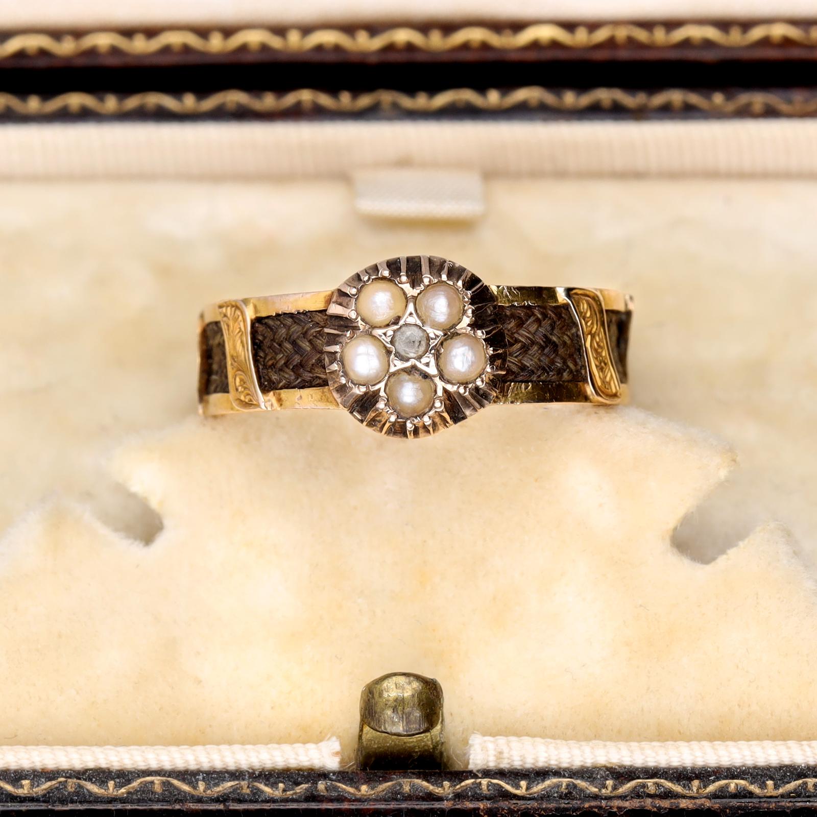 The Antique 1874 Pearl & Hairwork Mourning Ring