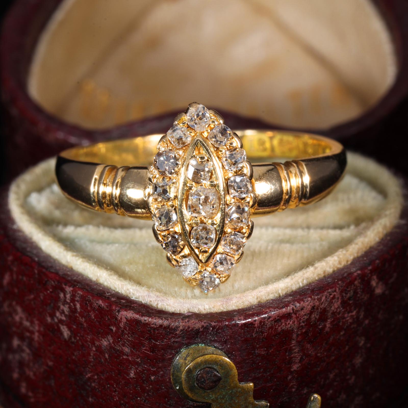 The Antique 1894 Diamond Salt and Pepper Navette Ring