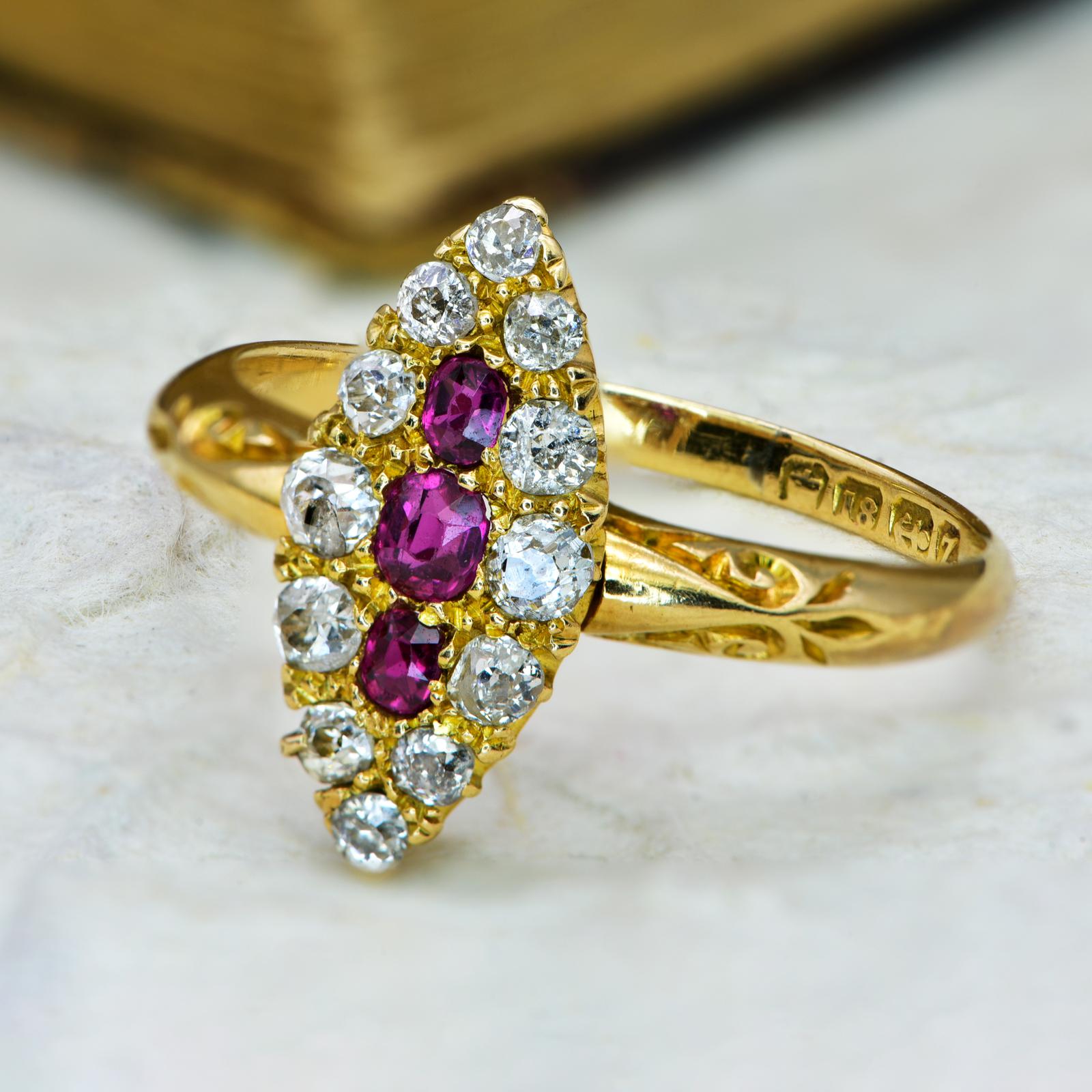 The Antique 1899 Victorian Navette Ruby & Diamond Ring