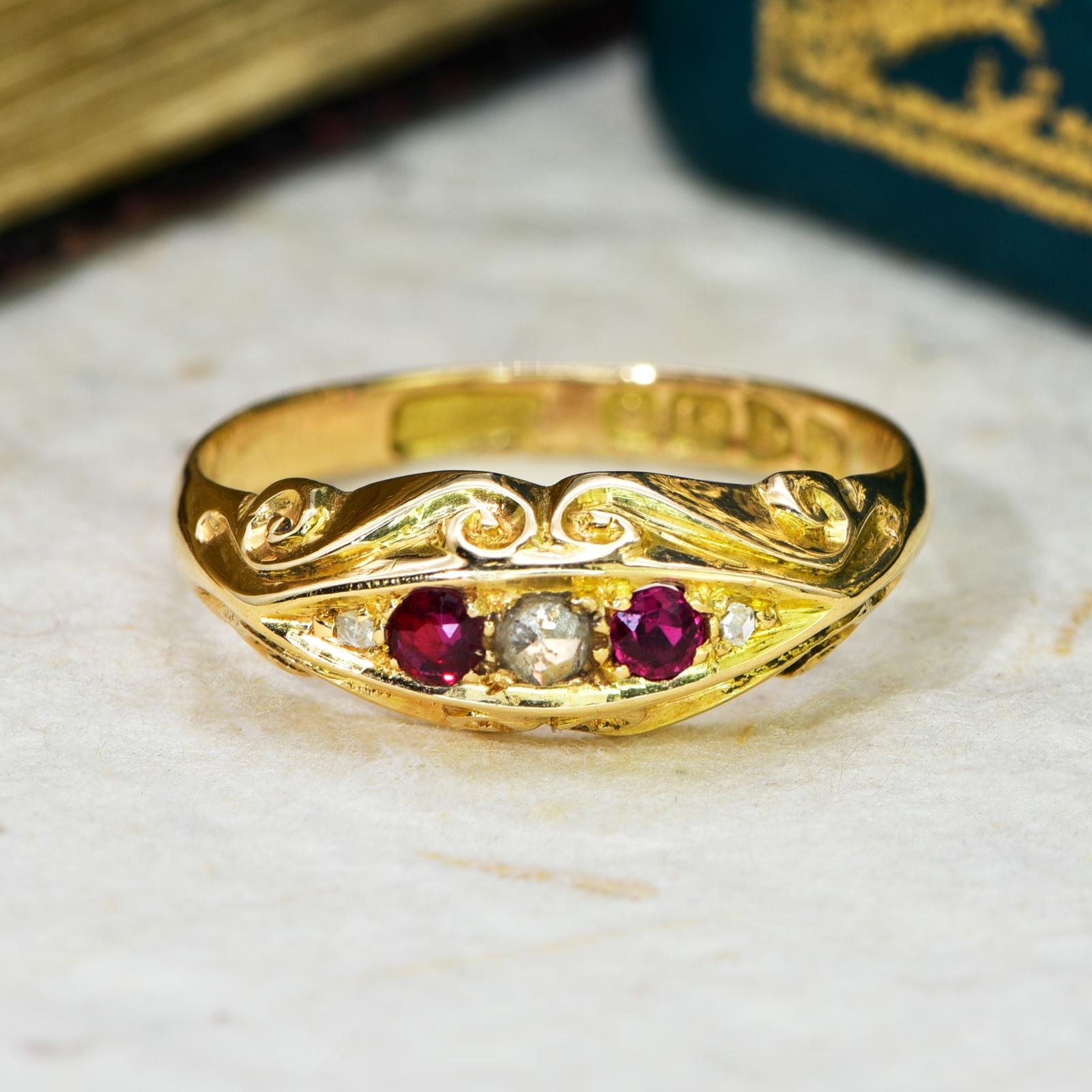 The Antique 1909 Ruby & Rose Cut Diamond Ornate Ring