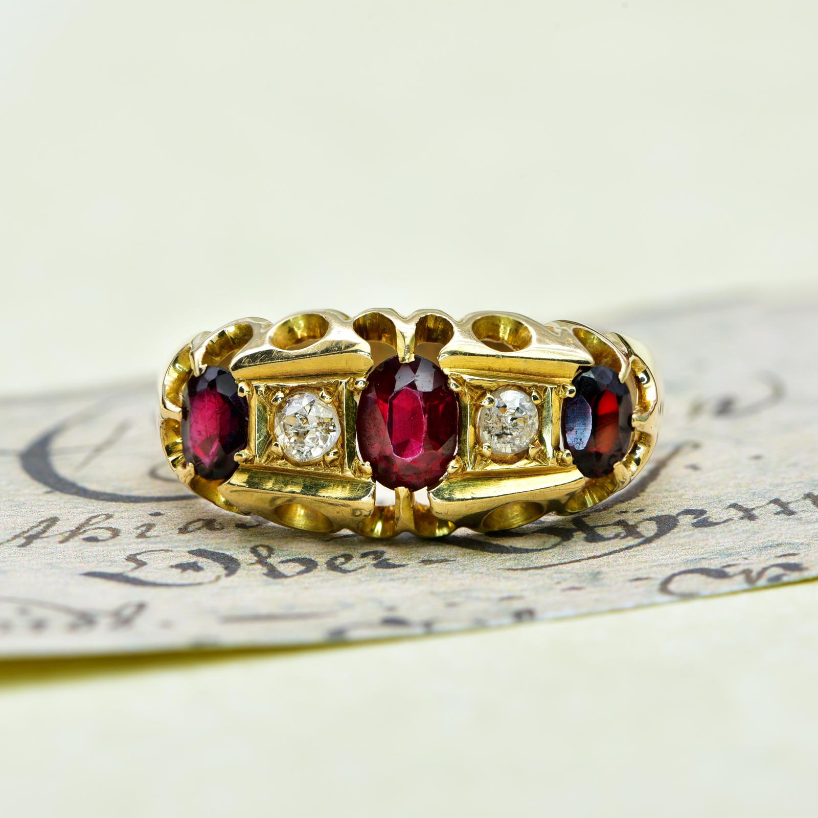 The Antique 1915 Garnet & Old Mine Cut Diamond Ring