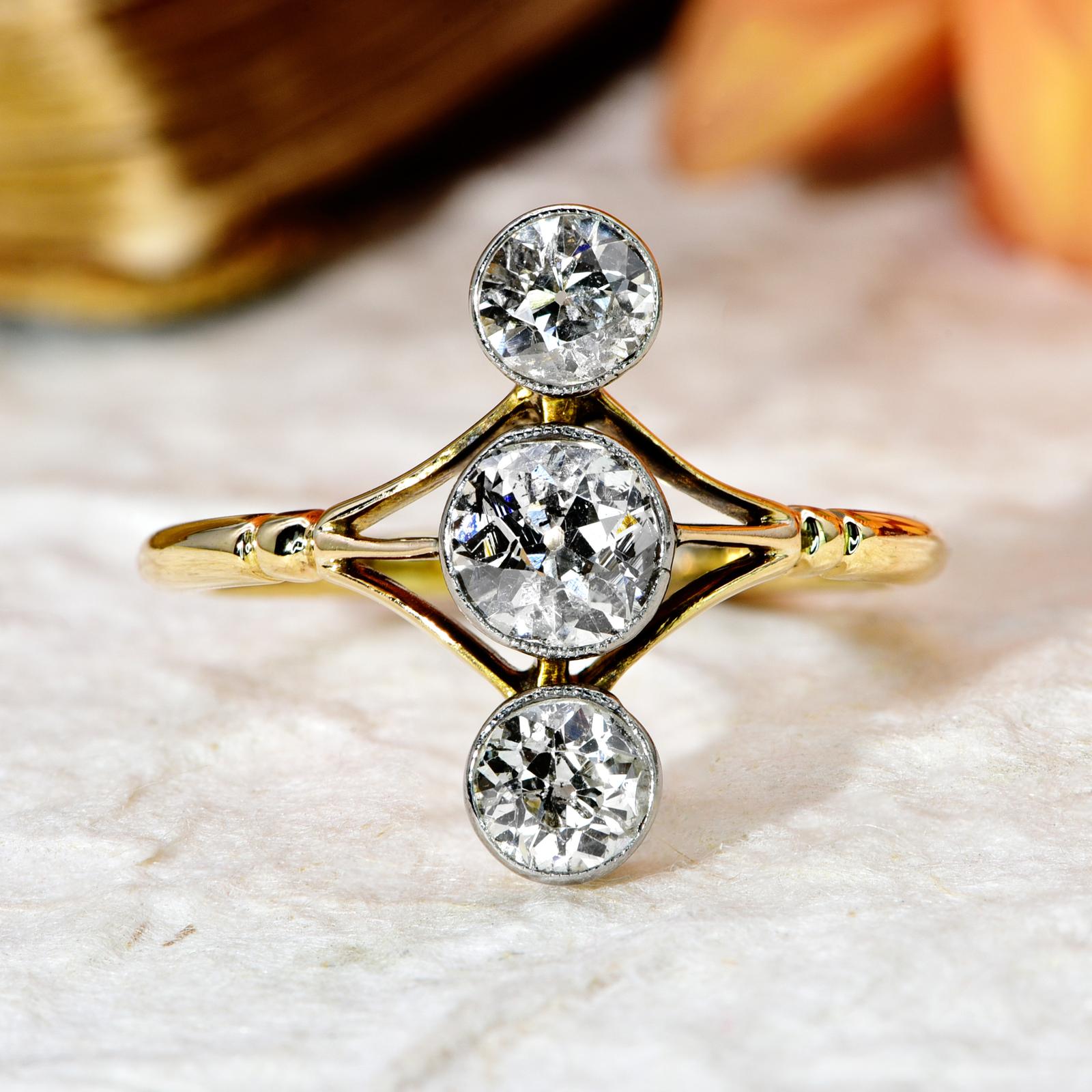 The Antique Art Deco Old European Cut Diamond Trio Ring