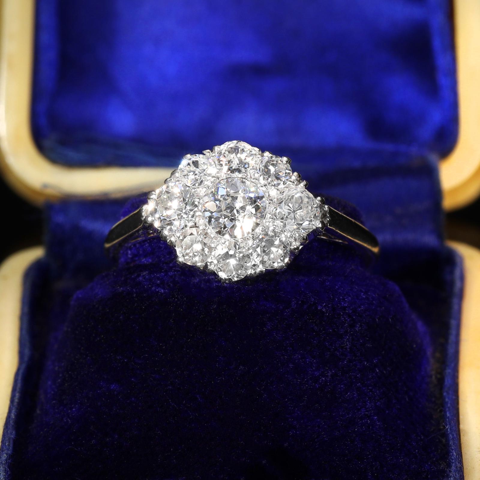The Antique Art Deco Platinum Old European Cut Diamond Cluster Ring