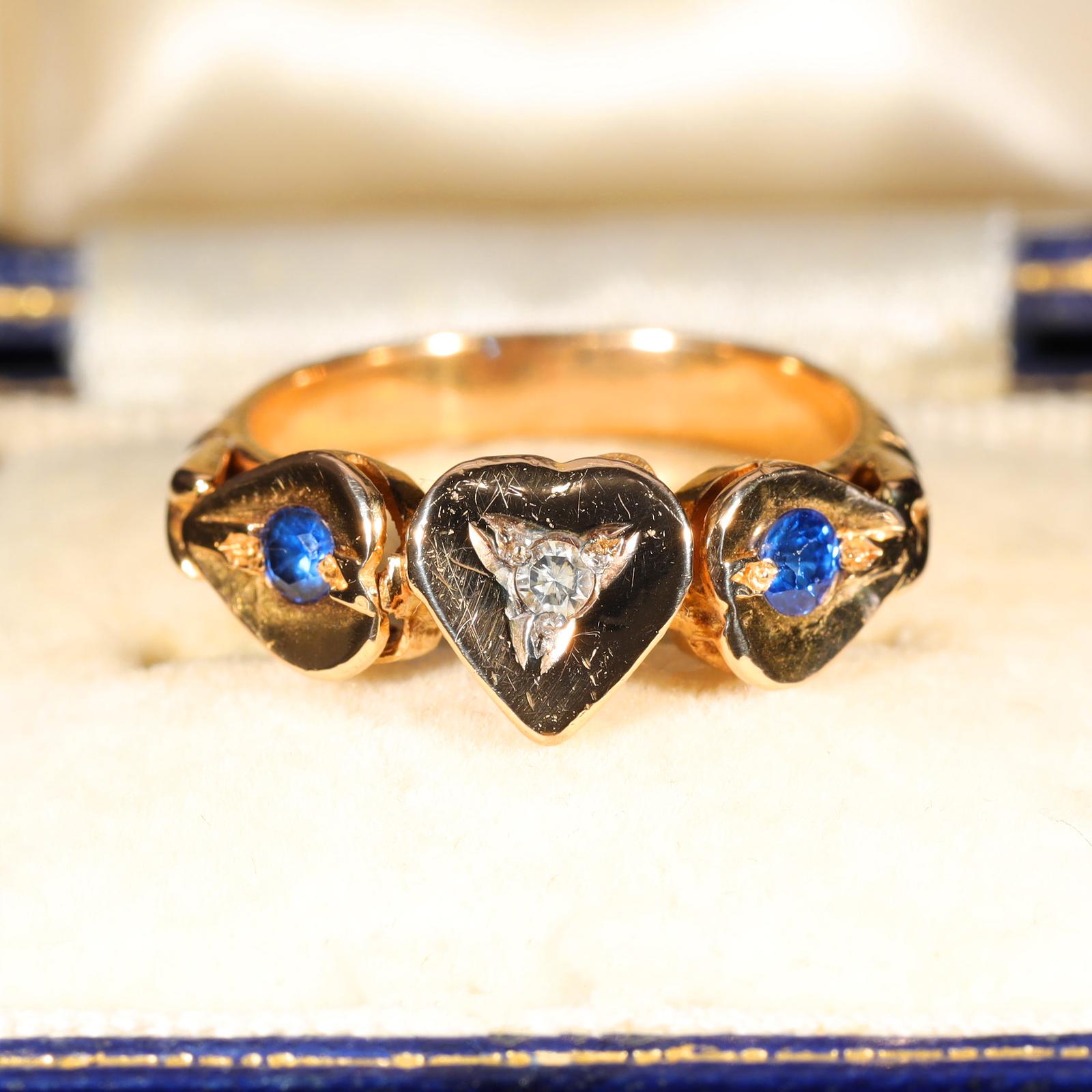 The Antique Diamond & Blue Stone Heart Ring