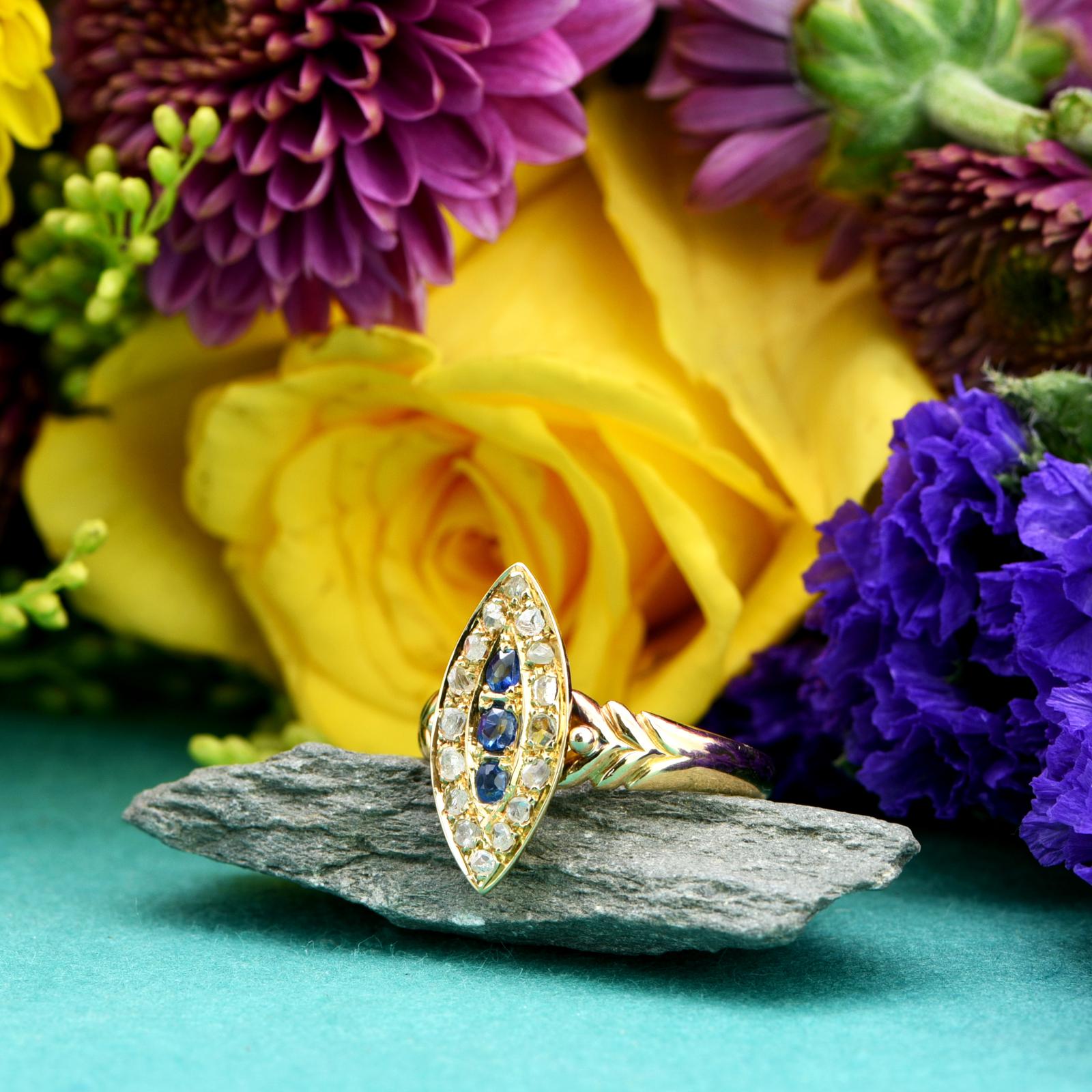 The Antique Edwardian 1905 Sapphire & Diamond Navette Gold Ring