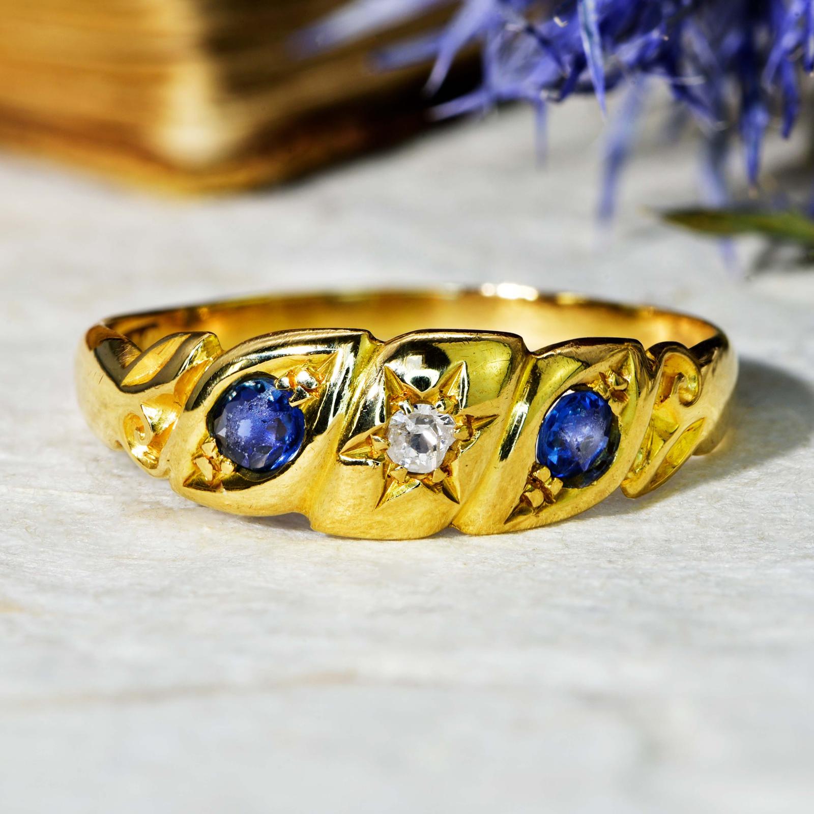 The Antique Edwardian 1907 Old Cut Diamond and Sapphire Ring