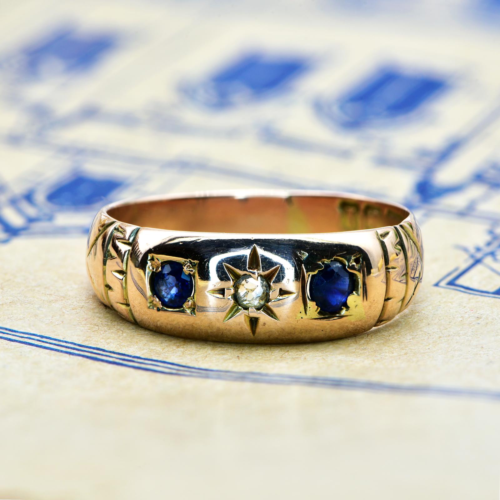 The Antique Edwardian 1910 Sapphire & Old Mine Cut Diamond Ring