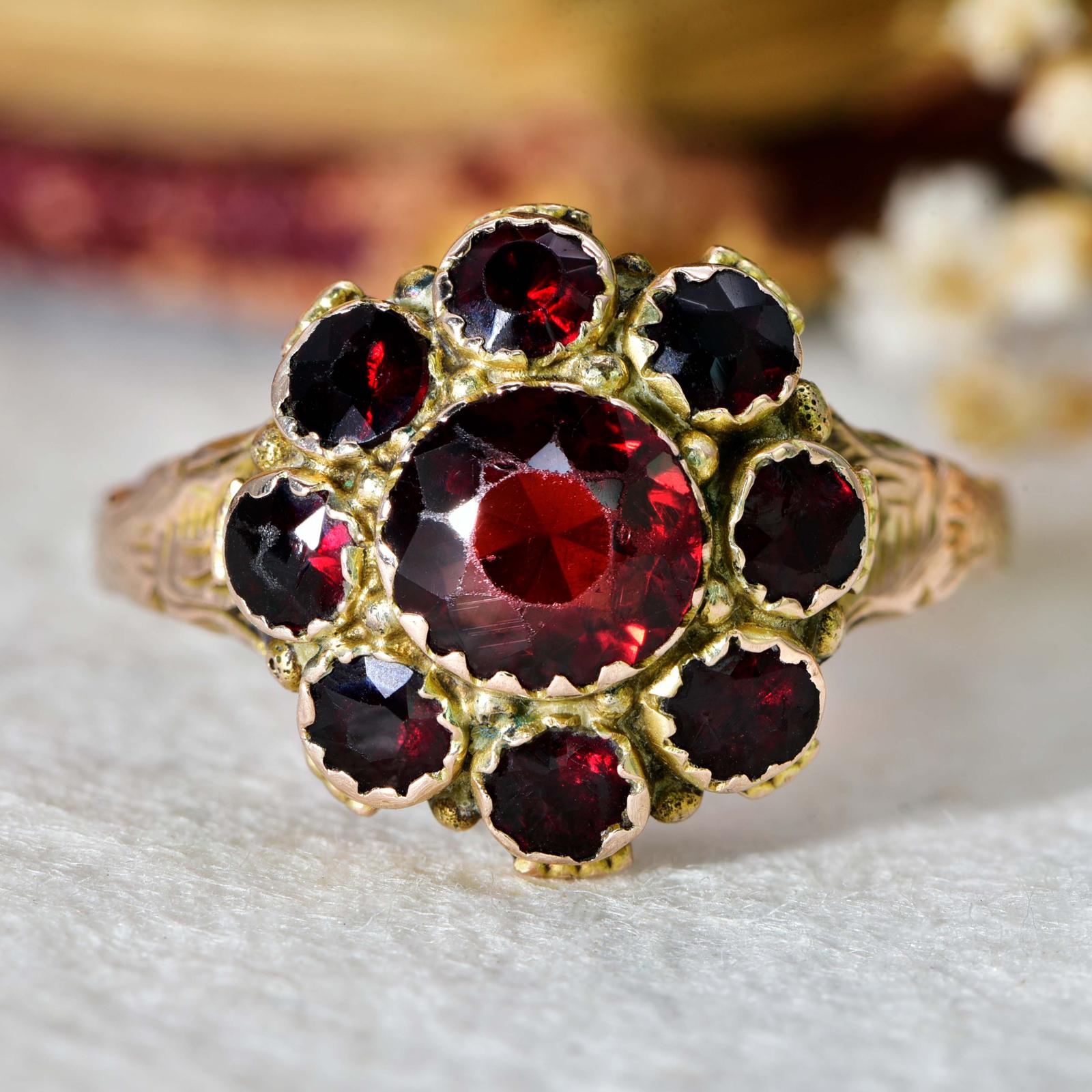 The Antique Edwardian Garnet Cluster Bohemian Ring