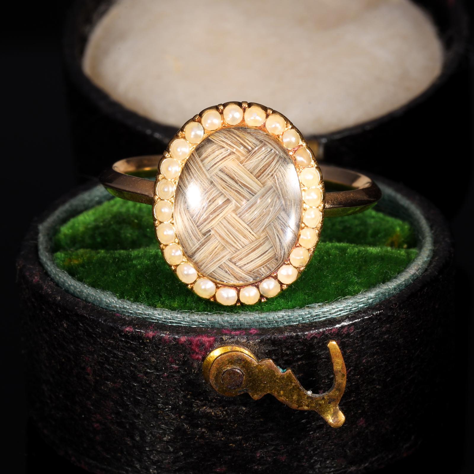 The Antique Georgian 1777 Pearl and Hairwork Mourning Ring