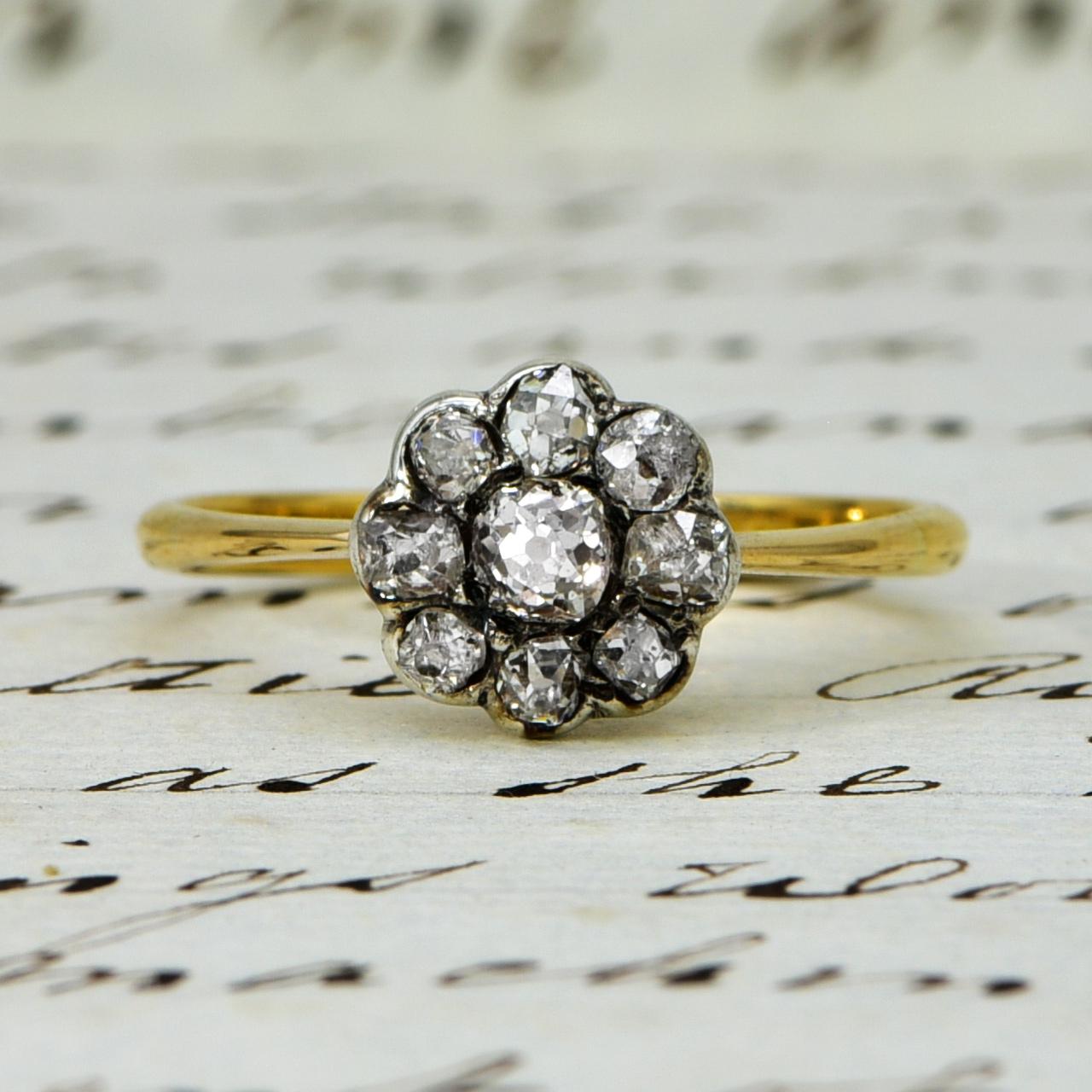 The Antique Late Victorian Old Cut Diamond Daisy Cluster Ring