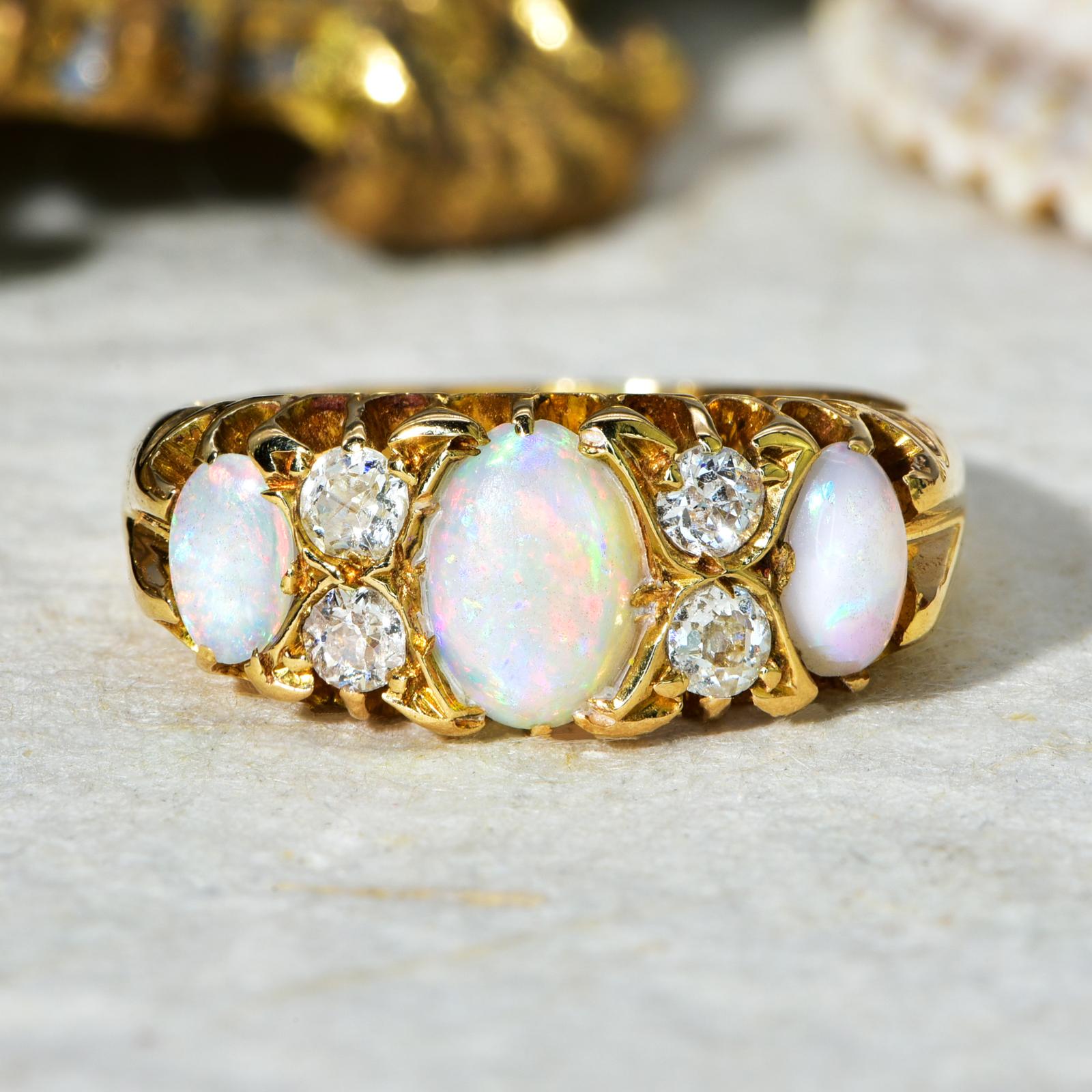 The Antique Late Victorian Three Opal & Four Diamond Ring