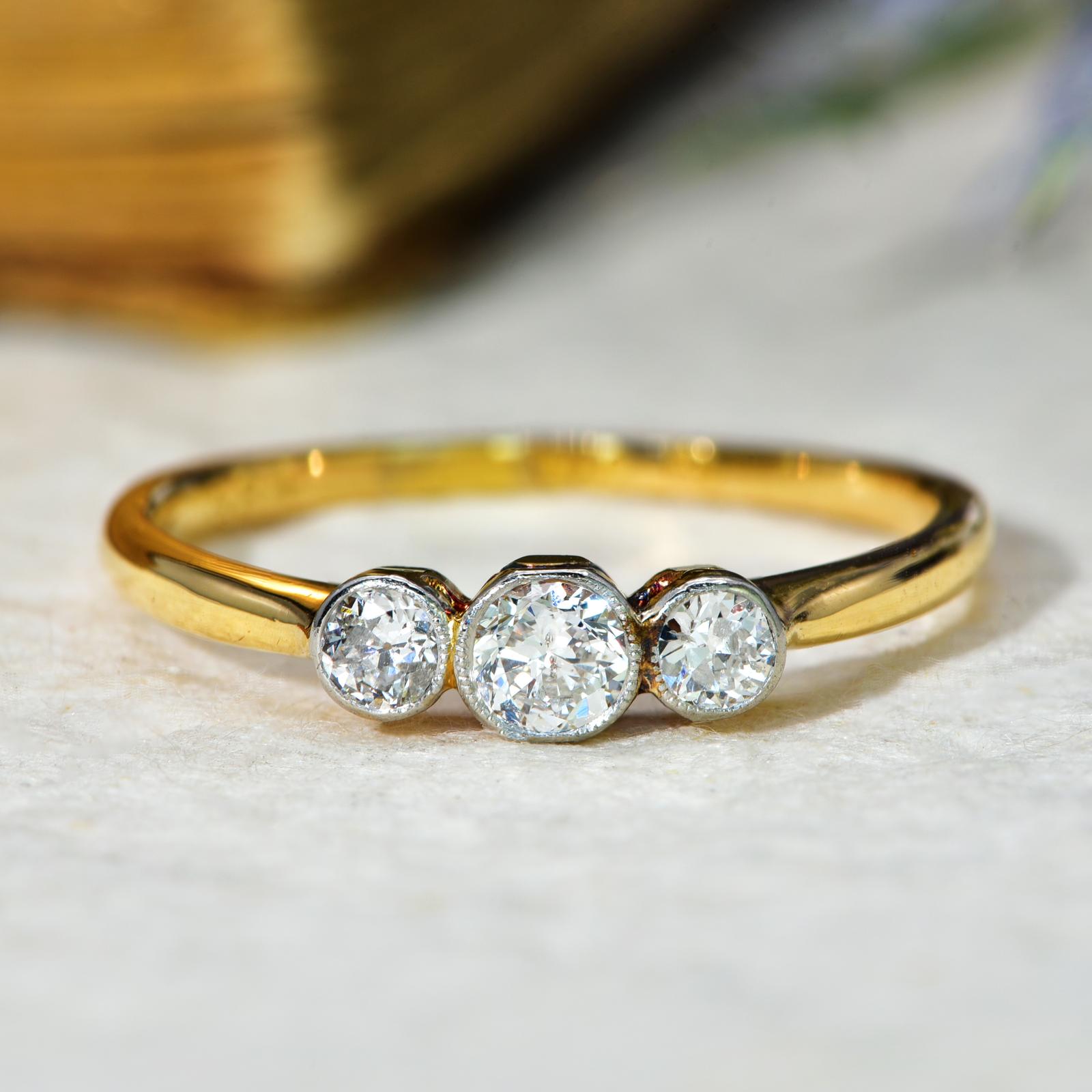 The Antique Old Brilliant Cut Three Diamond Ring
