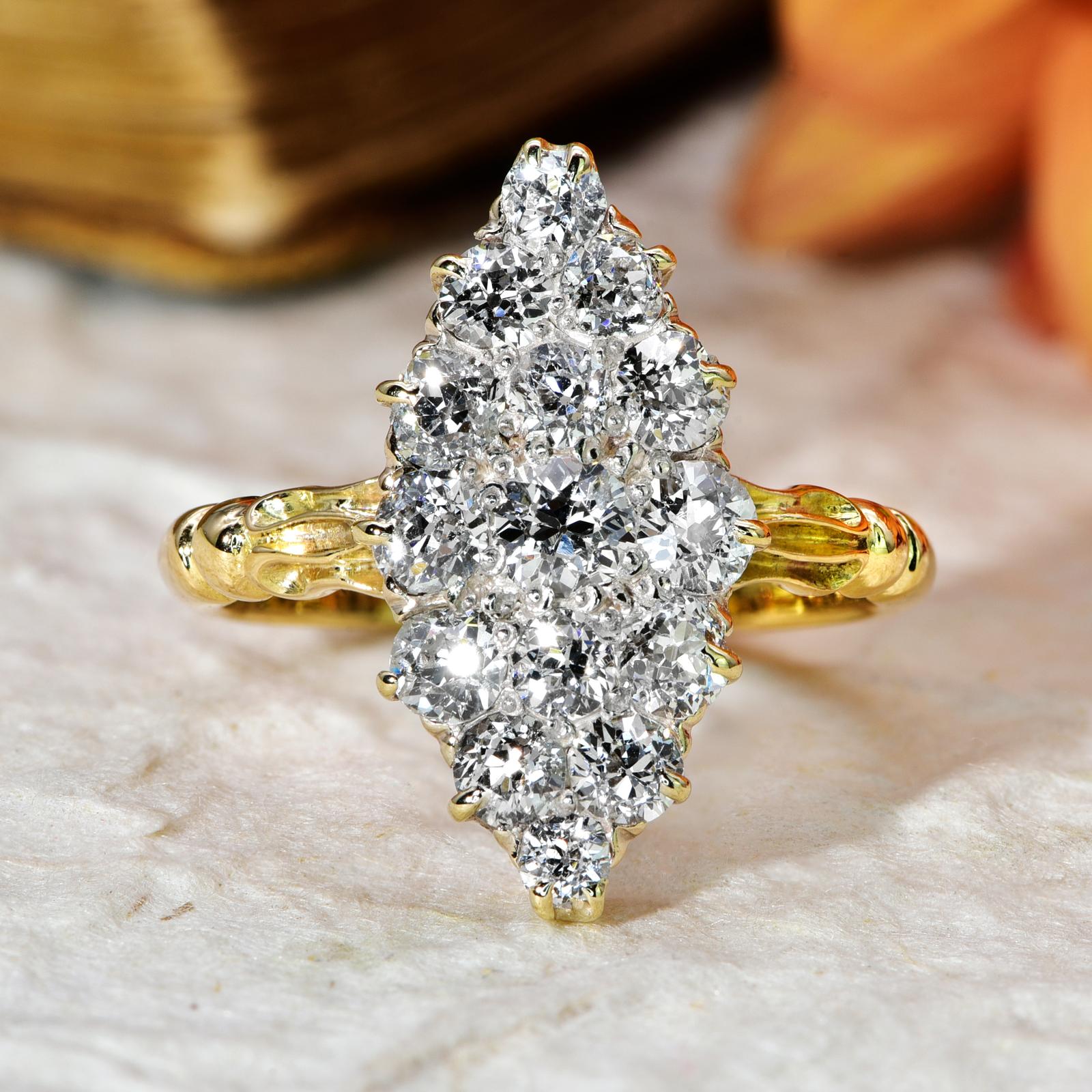 The Antique Old Cut Fifteen Diamond Navette Ring