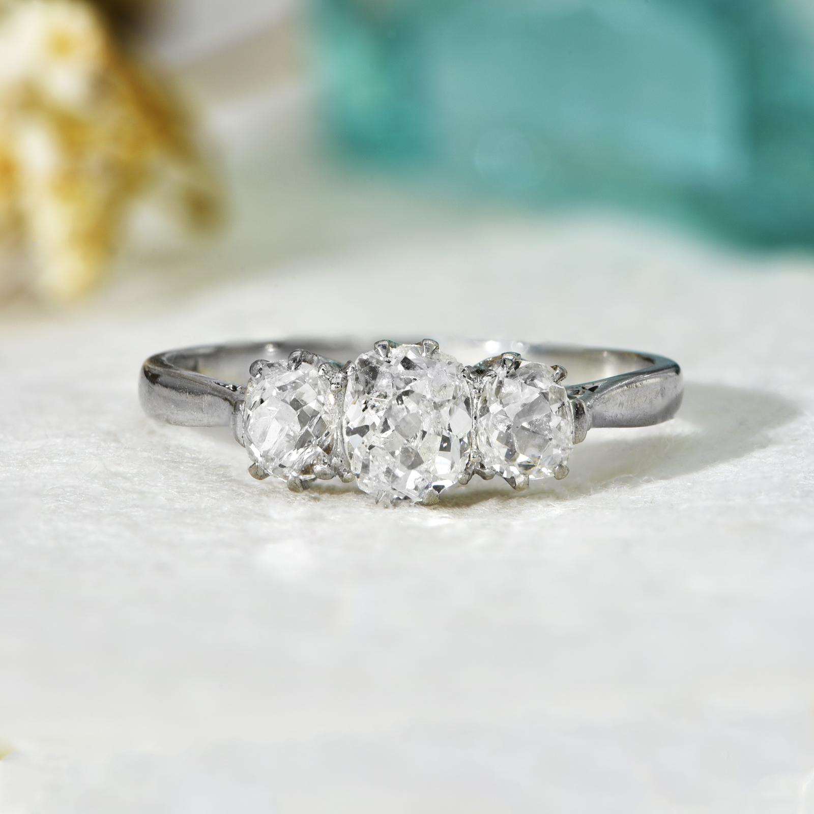 The Antique Old European Cut Three Diamond Character Ring