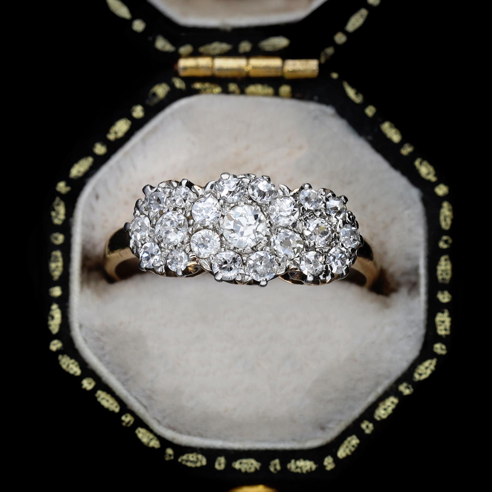 The Antique Trio of Brilliant Cut Diamonds Cluster Ring