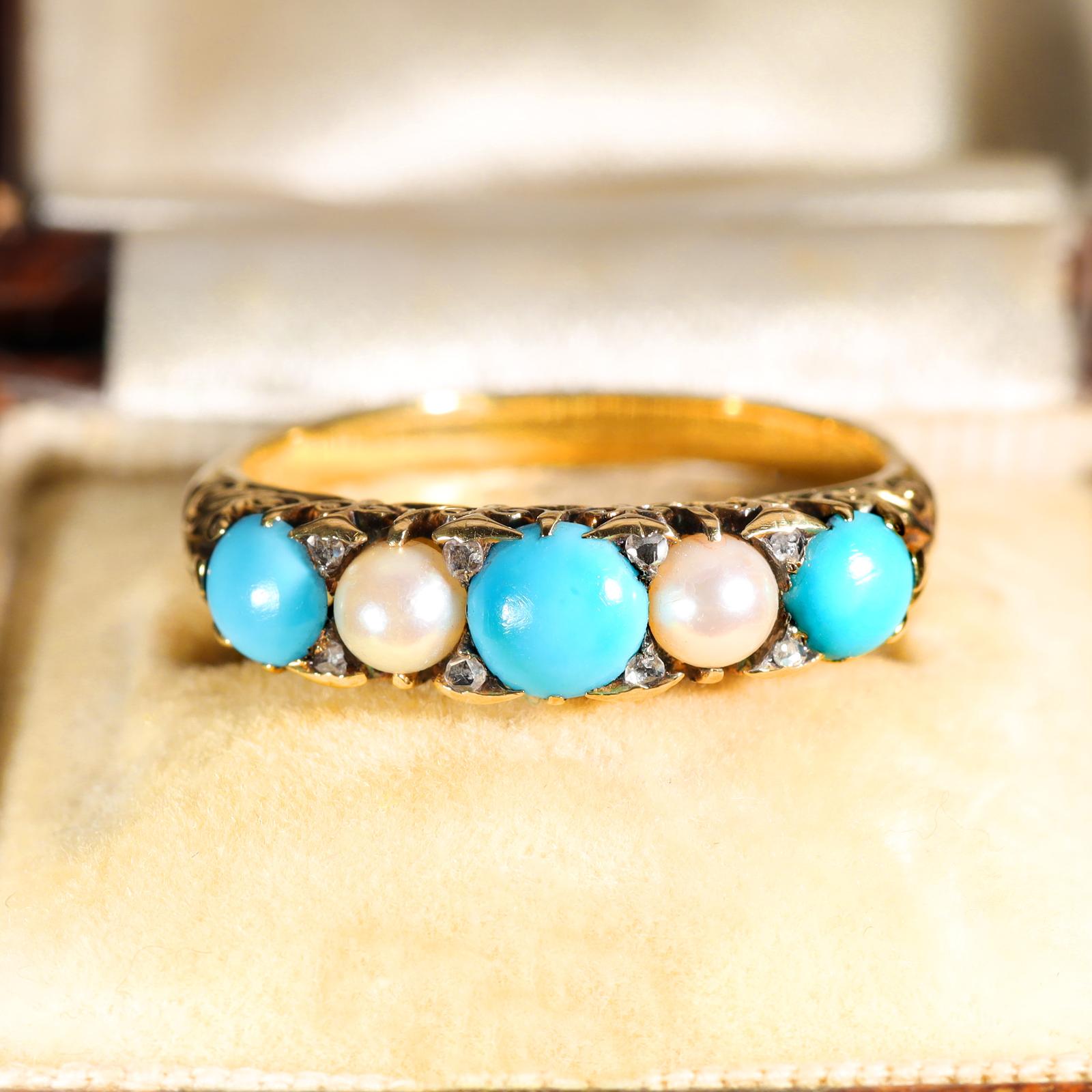 The Antique Turquoise, Pearl & Diamond Aqua Ring