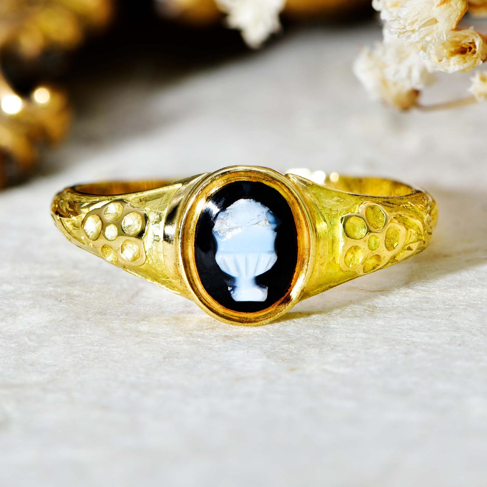 The Antique Victorian 1837 Memorial Cameo Urn Ring