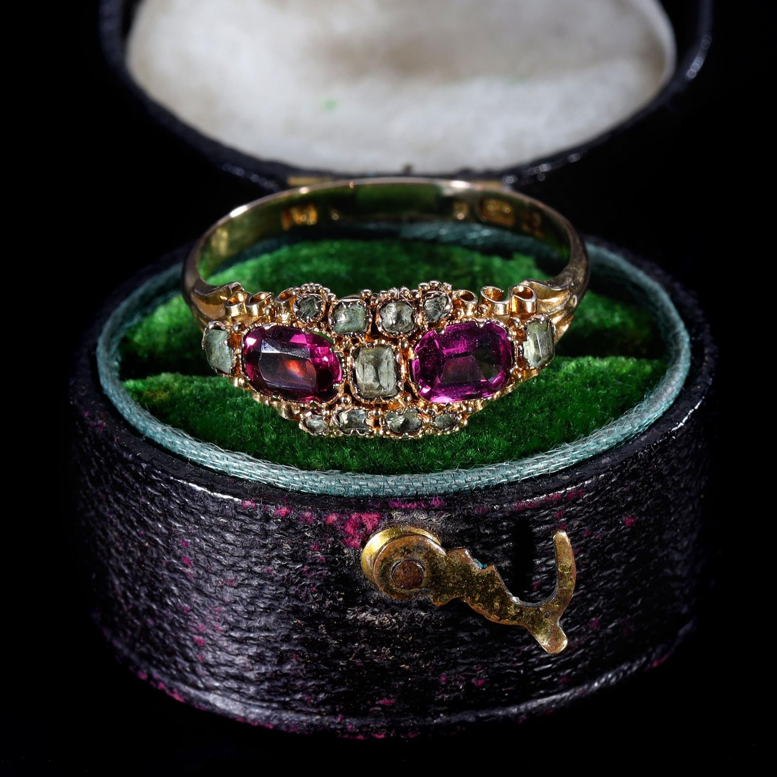 The Antique Victorian 1865 Garnet & Emerald Romance Ring