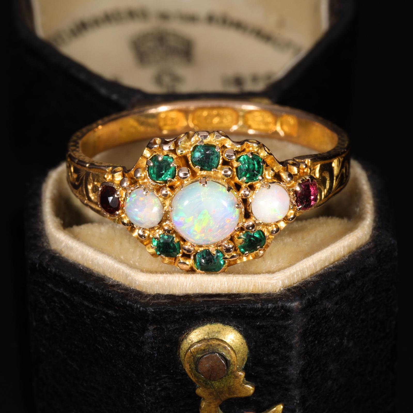 The Antique Victorian 1871 Opal, Emerald & Garnet Juicy Ring