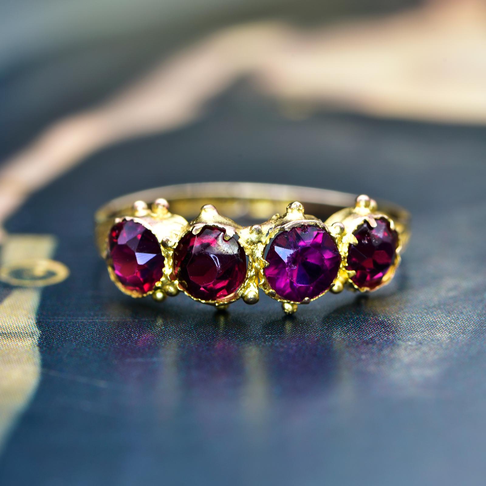 The Antique Victorian 1876 Four Garnet Enchanting Ring