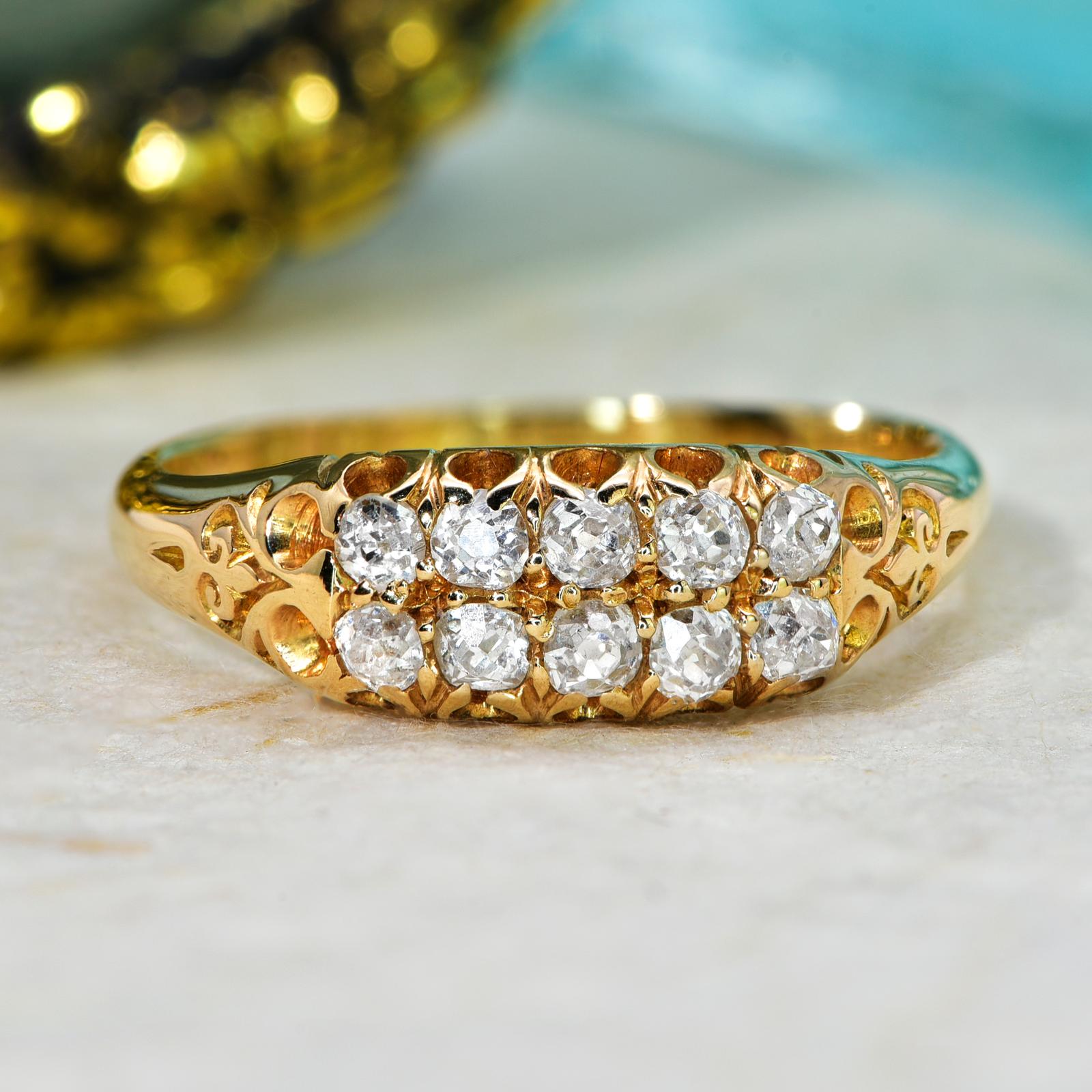 The Antique Victorian 1889 Ten Old Mine Cut Diamond Ring
