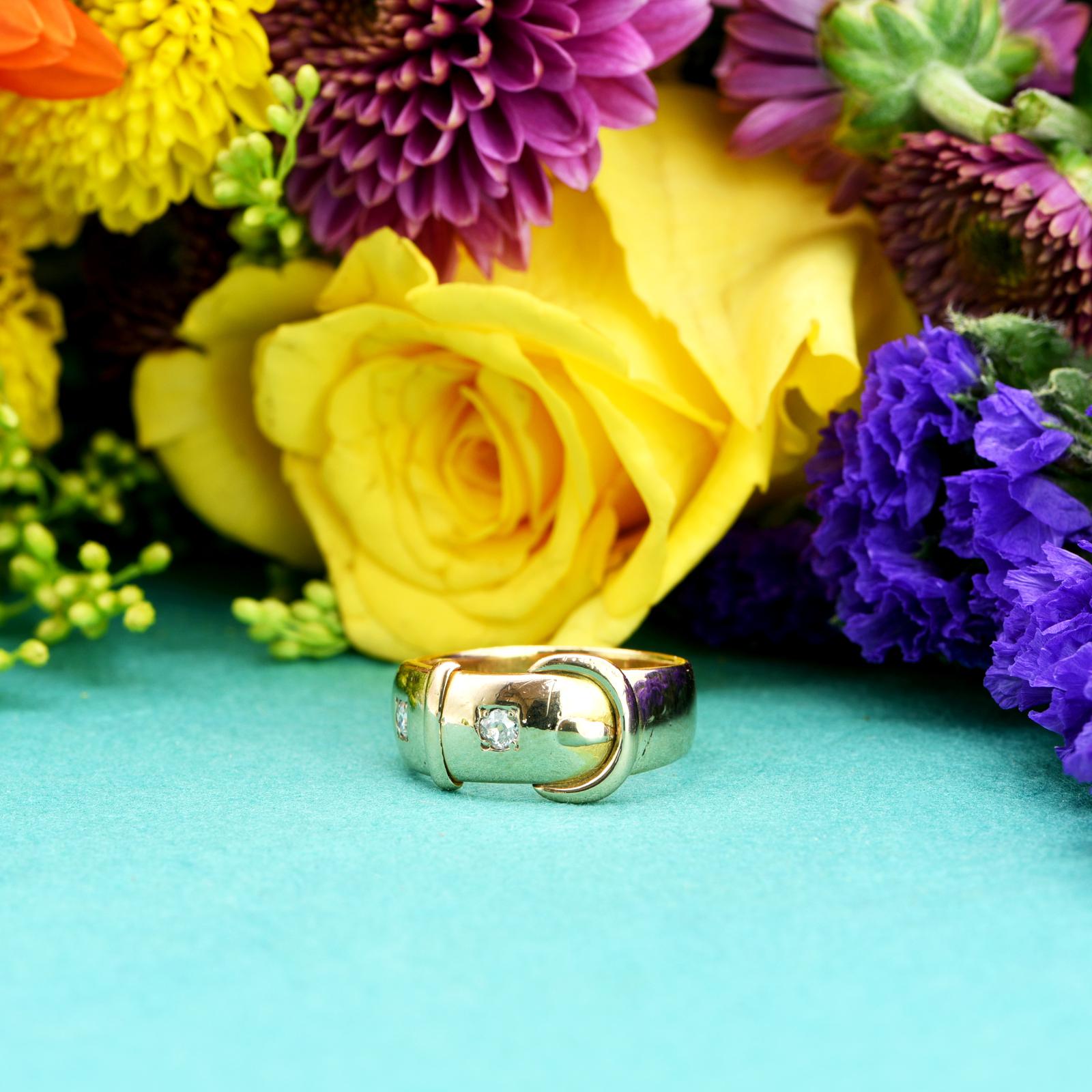The Antique Victorian 1890 Gold & Diamond Buckle Ring