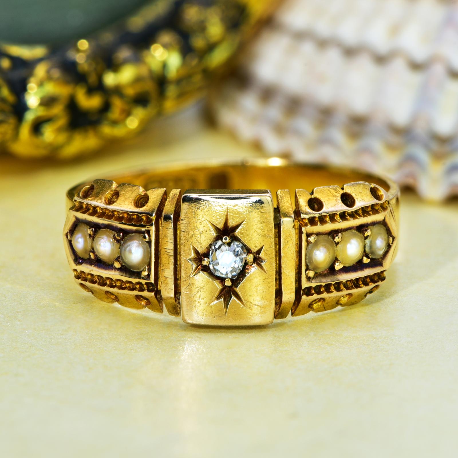 The Antique Victorian 1894 Pearl & Old Cut Diamond Ring