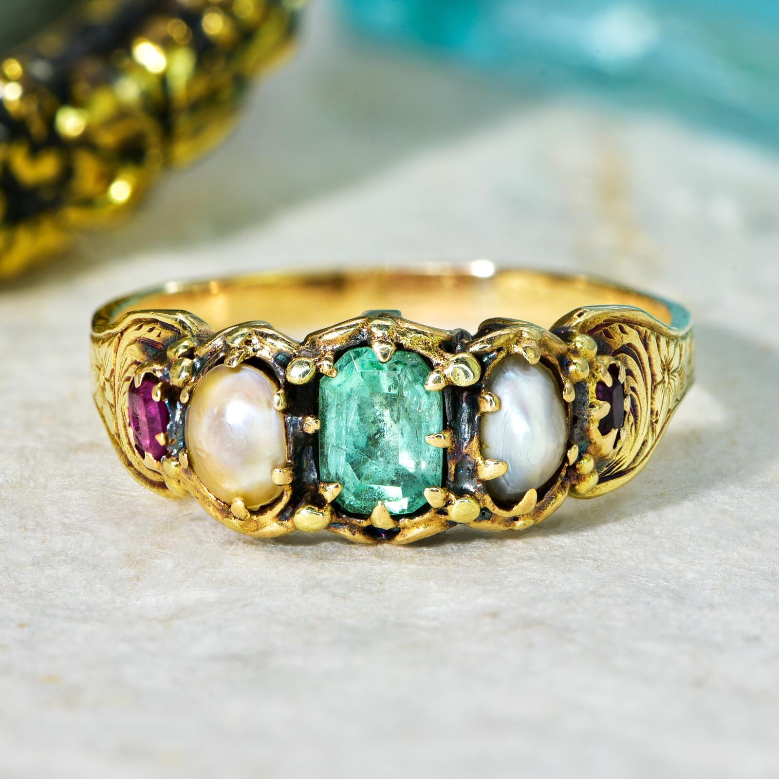 The Antique Victorian Emerald, Pearl & Ruby Ring
