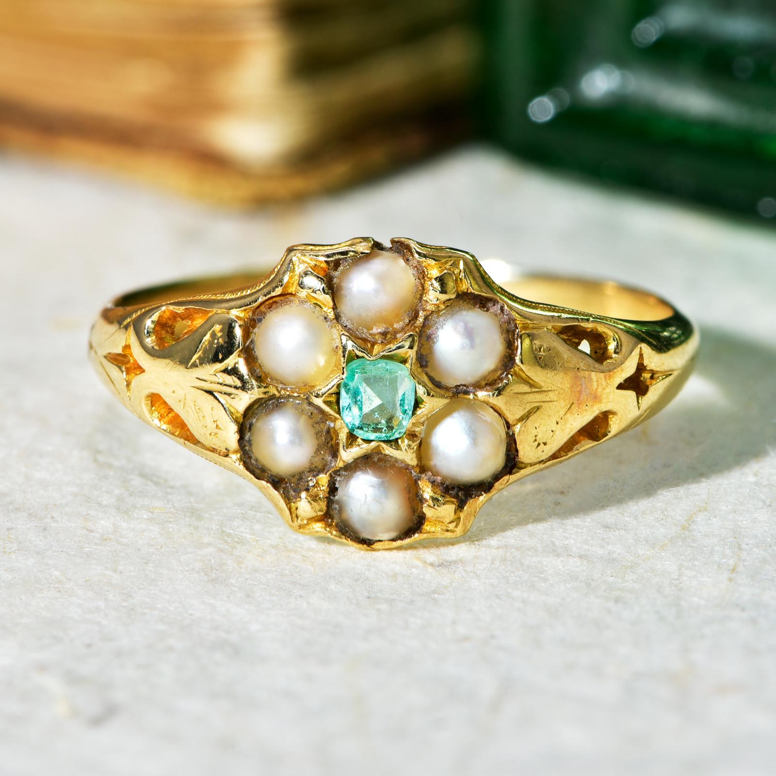 The Antique Victorian Era Emerald & Pearl Floral Ring